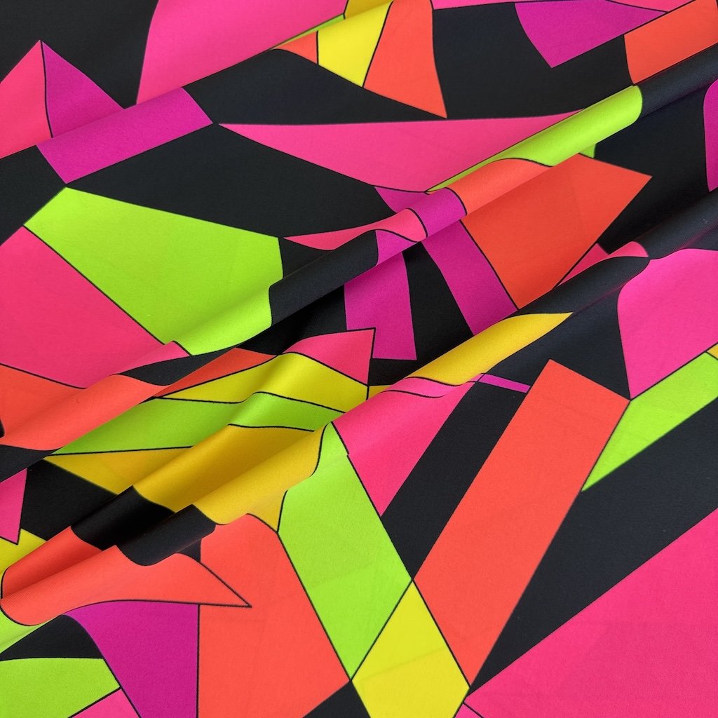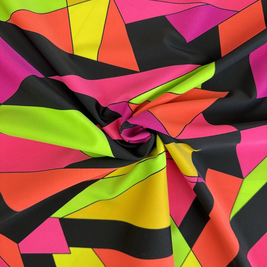 Elastischer Stoff mit modernen und farbenfrohen Mustern. Hochwertiger Jersey vom europäischen Hersteller, mit einer Zusammensetzung von 80 % Nylon und 20 % Elasthan sowie einem Flächengewicht von 200 g/m². Der auch als Lycra bekannte Badeanzugstoff eignet sich ideal für Badeanzüge, Bikinis, Leggings, Trikots, Bodys, Tanzkostüme, Kleider und Funktionskleidung.