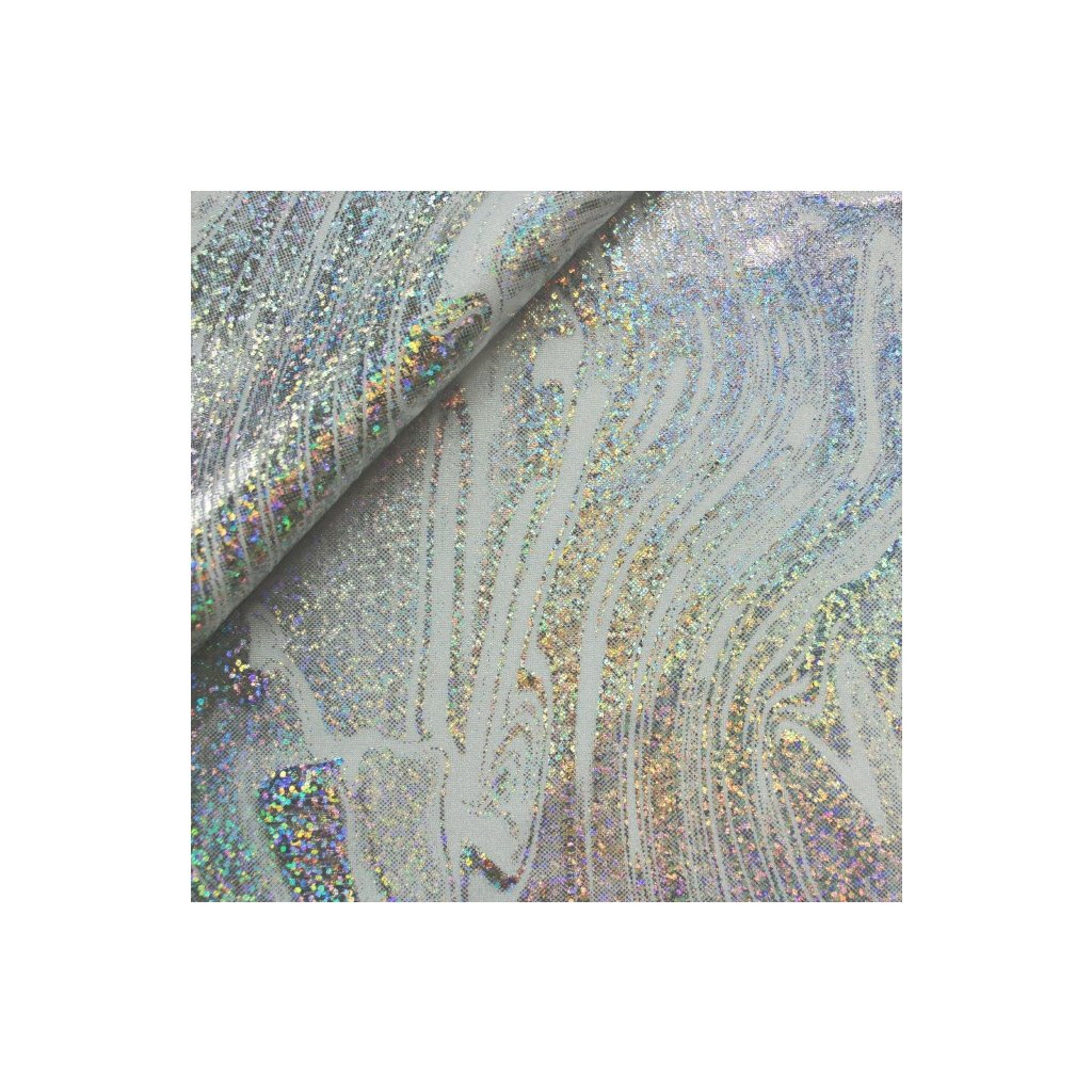 Hochwertiger elastischer Jersey mit einheitlicher Grundfarbe, auf deren Oberfläche sich silberne Glitzereffekte abwechseln und für einen auffälligen Glanz sorgen. Der Stoff stammt von einem europäischen Hersteller und besteht aus 80 % Polyamid und 20 % Elasthan, mit einem Flächengewicht von 204 g/m². Dieser Badeanzugstoff eignet sich hervorragend für Tanzkostüme, Badeanzüge, Bikinis, Leggings, Trikots, Bodys und Kleider.