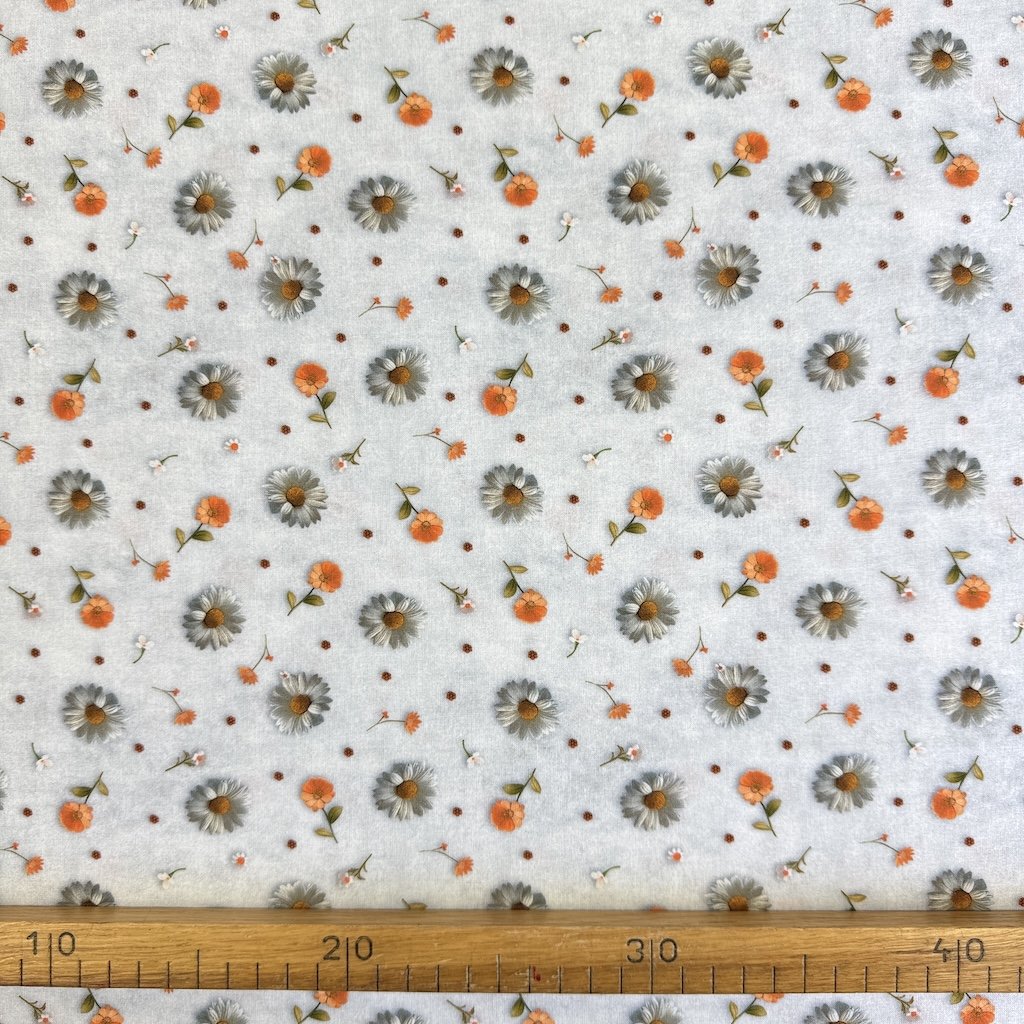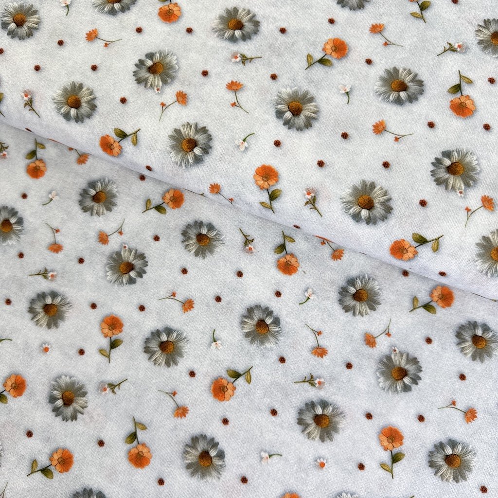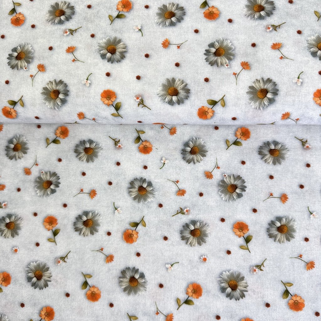 Baumwolle digital 3D - Gänseblümchen und Ringelblumen auf Grau