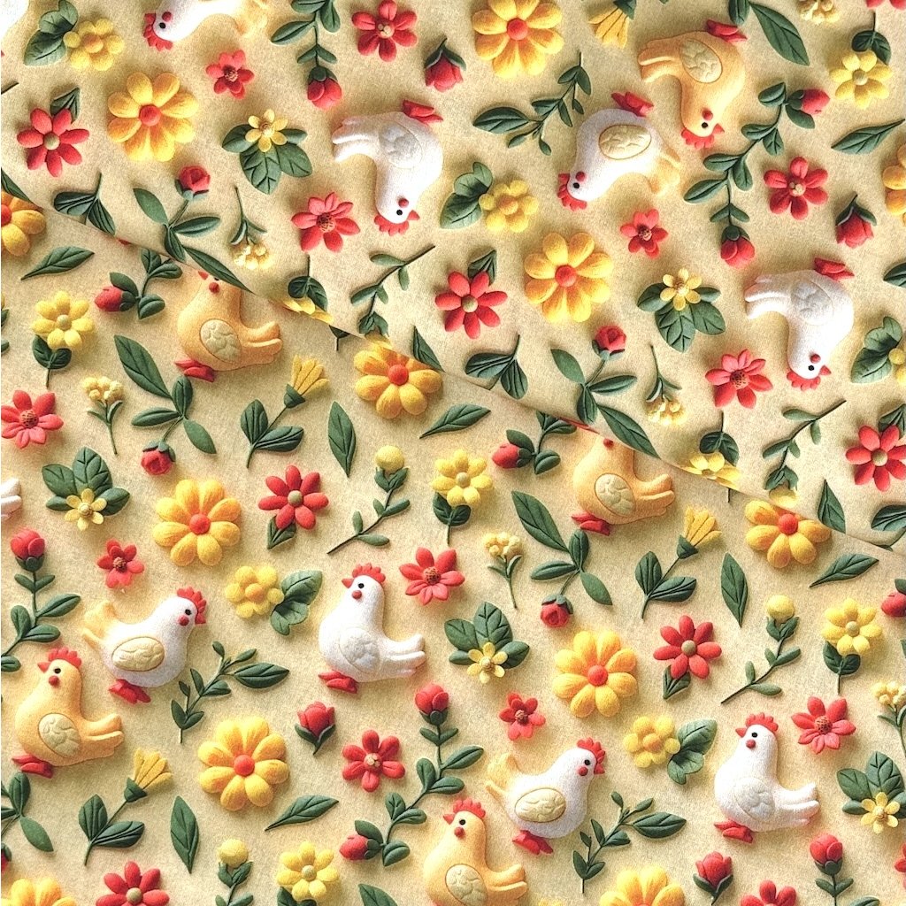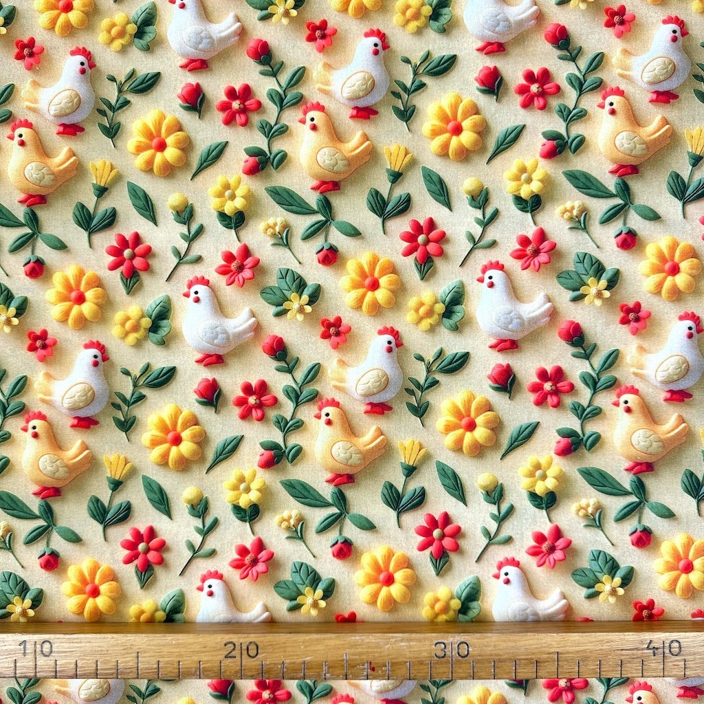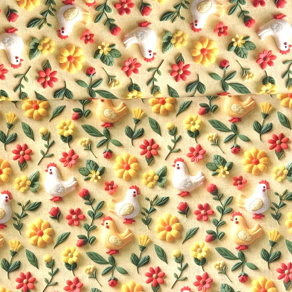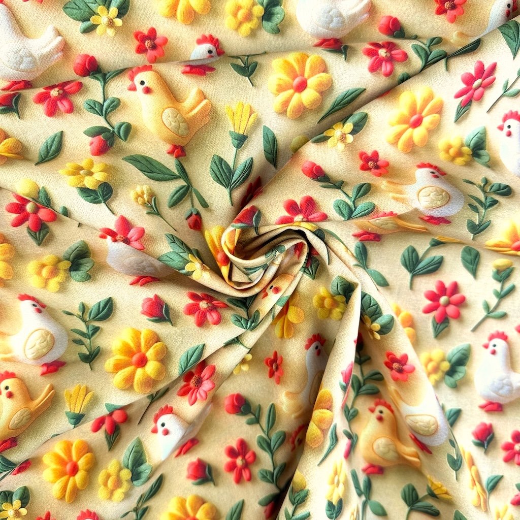 Baumwolle digital 3D - Hühner auf Gelb