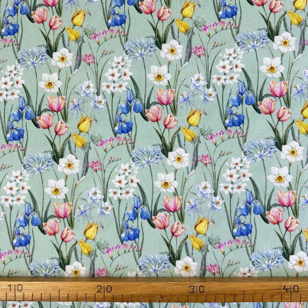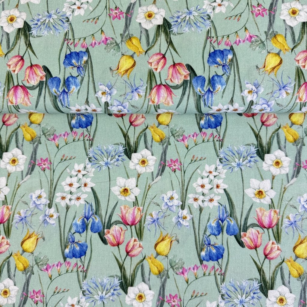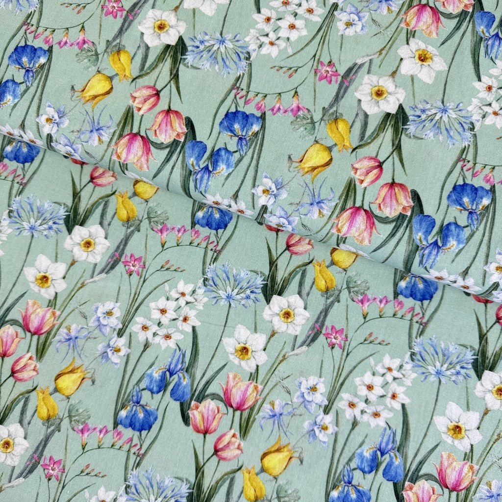 Baumwolle digital - Wiesenblumen auf Mintgrün