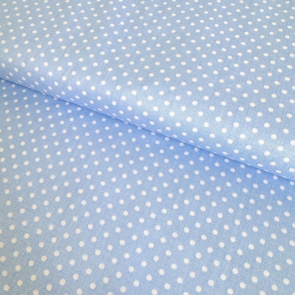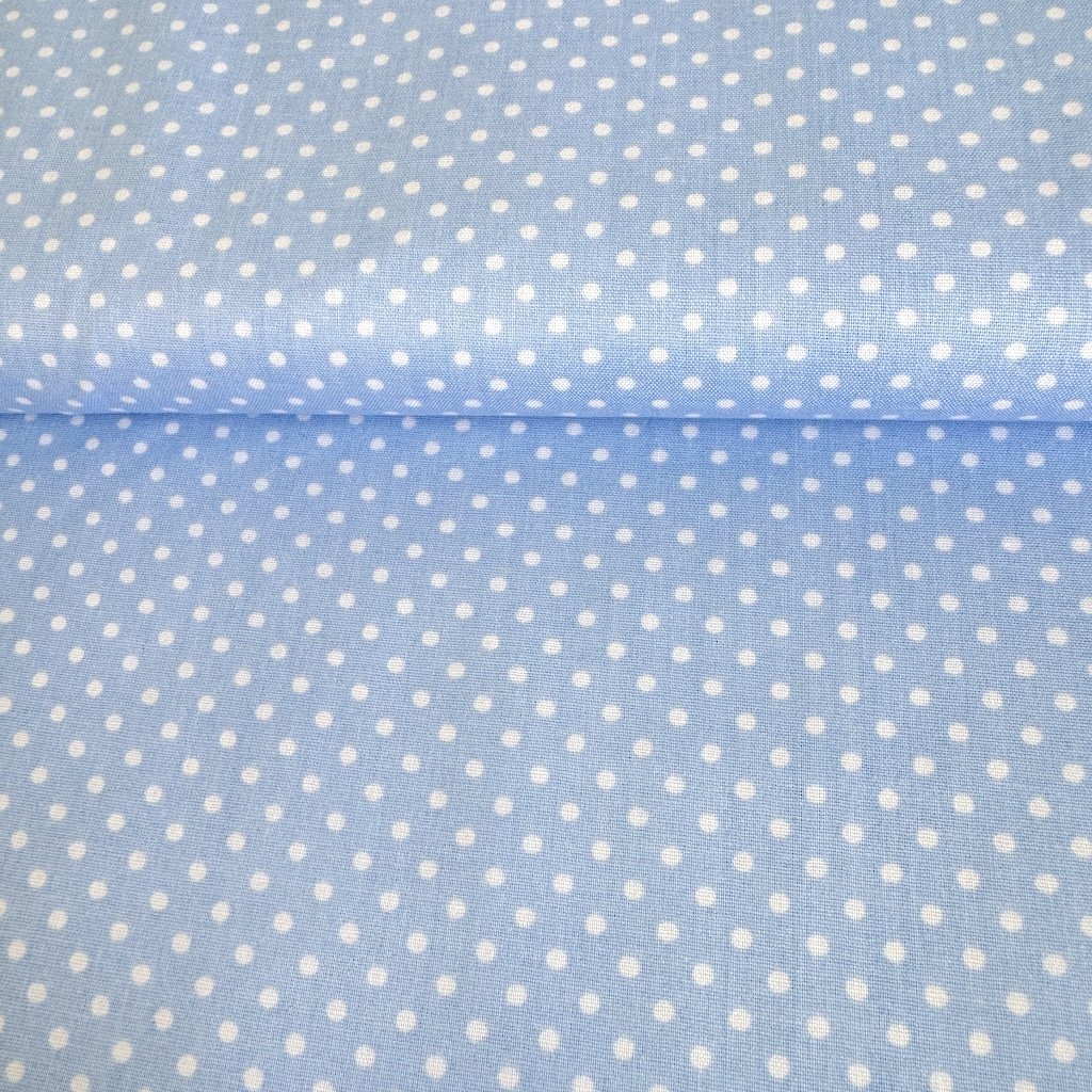 Baumwolle gemustert – Punkt (3 mm) Weiß auf Hellblau