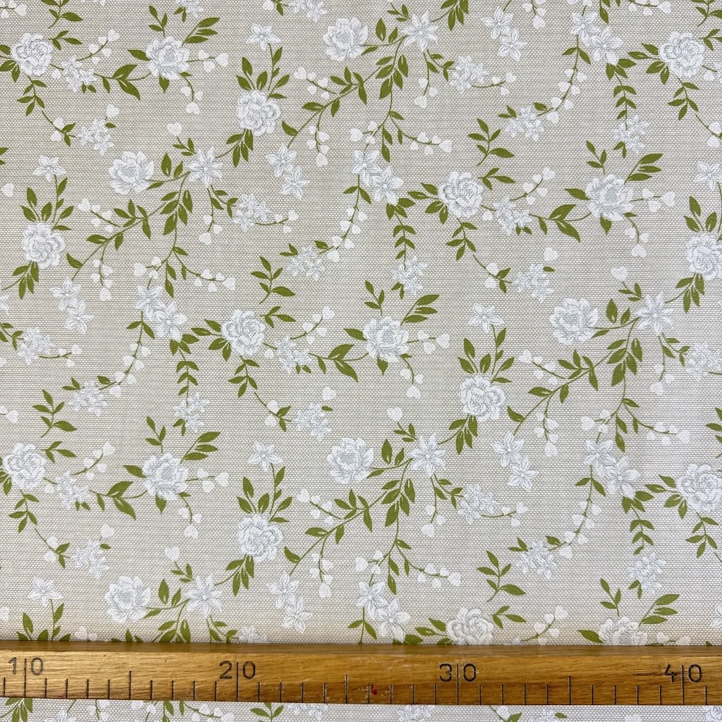 Baumwolle gemustert - Blümchen mit Herzchen in Grau-Weiß