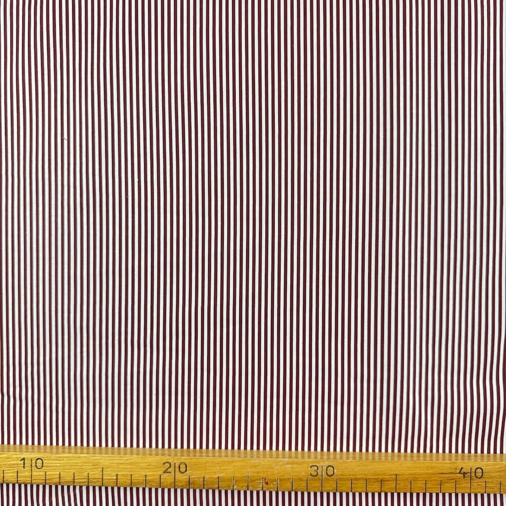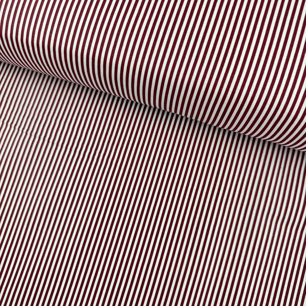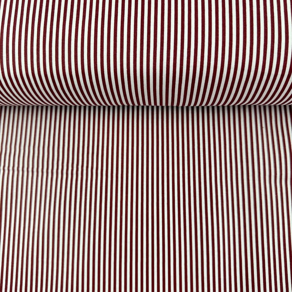 Baumwolle gemustert - Burgunderroter Streifen (3mm) auf Weiß