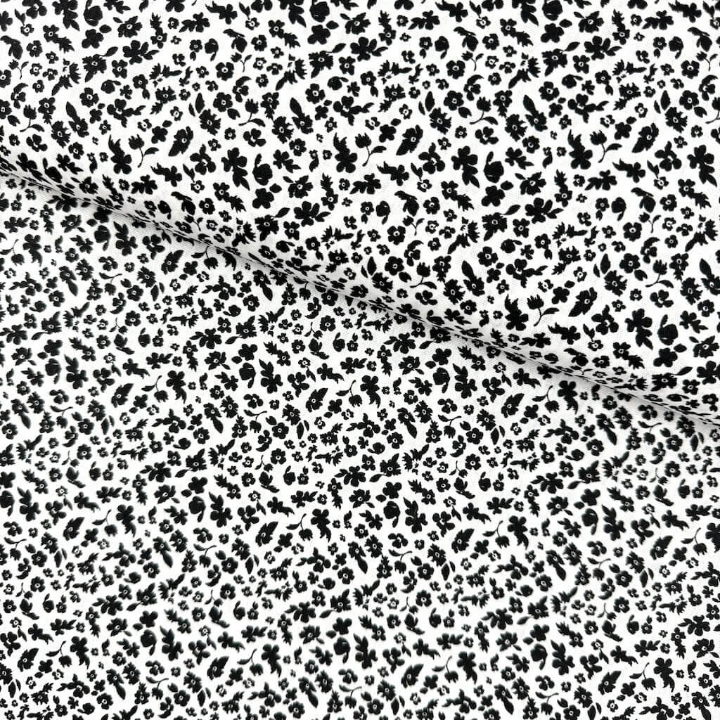 Baumwolle gemustert - Schwarze Miniblumen auf Weiß