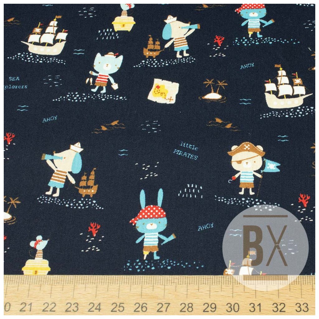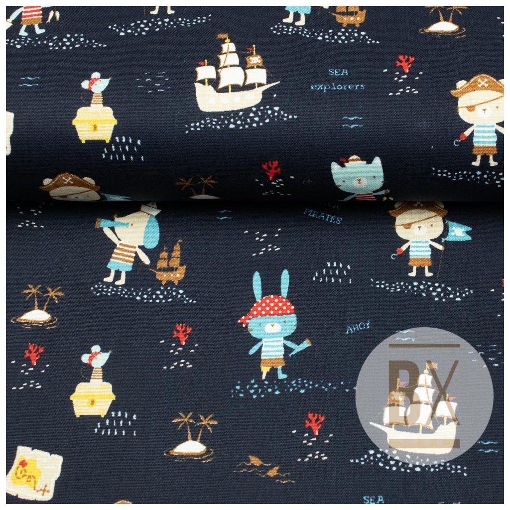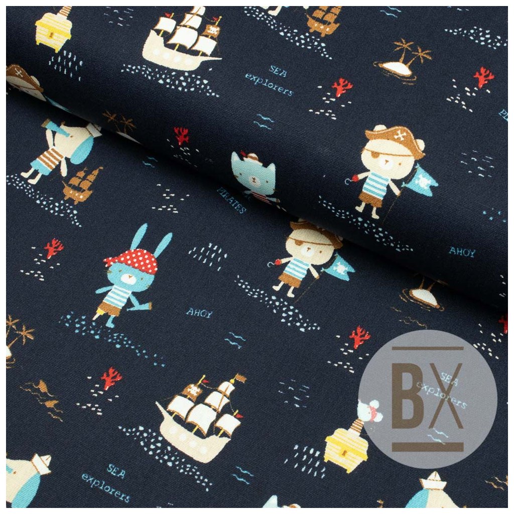 Baumwolle gemustert - Tierpiraten dunkelblau