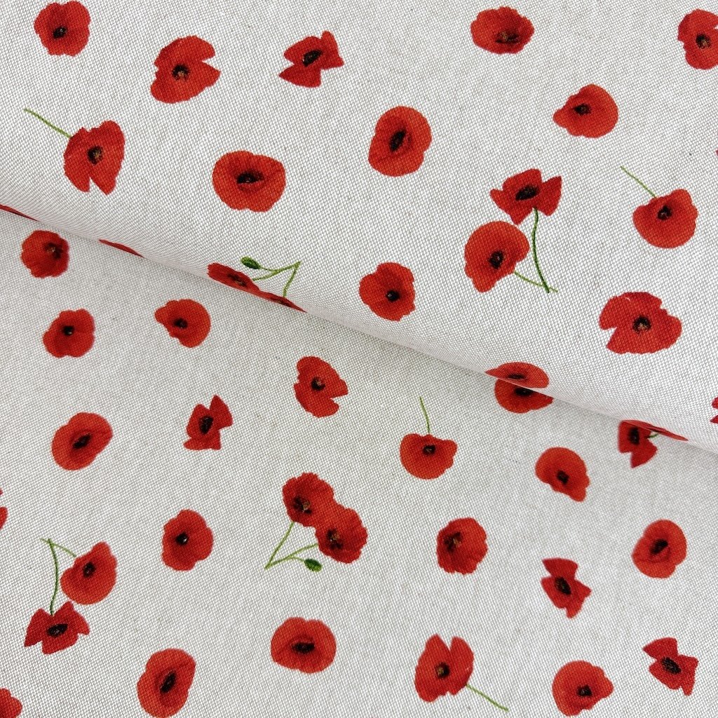 Baumwolle natur – Dichte Mohnblumen