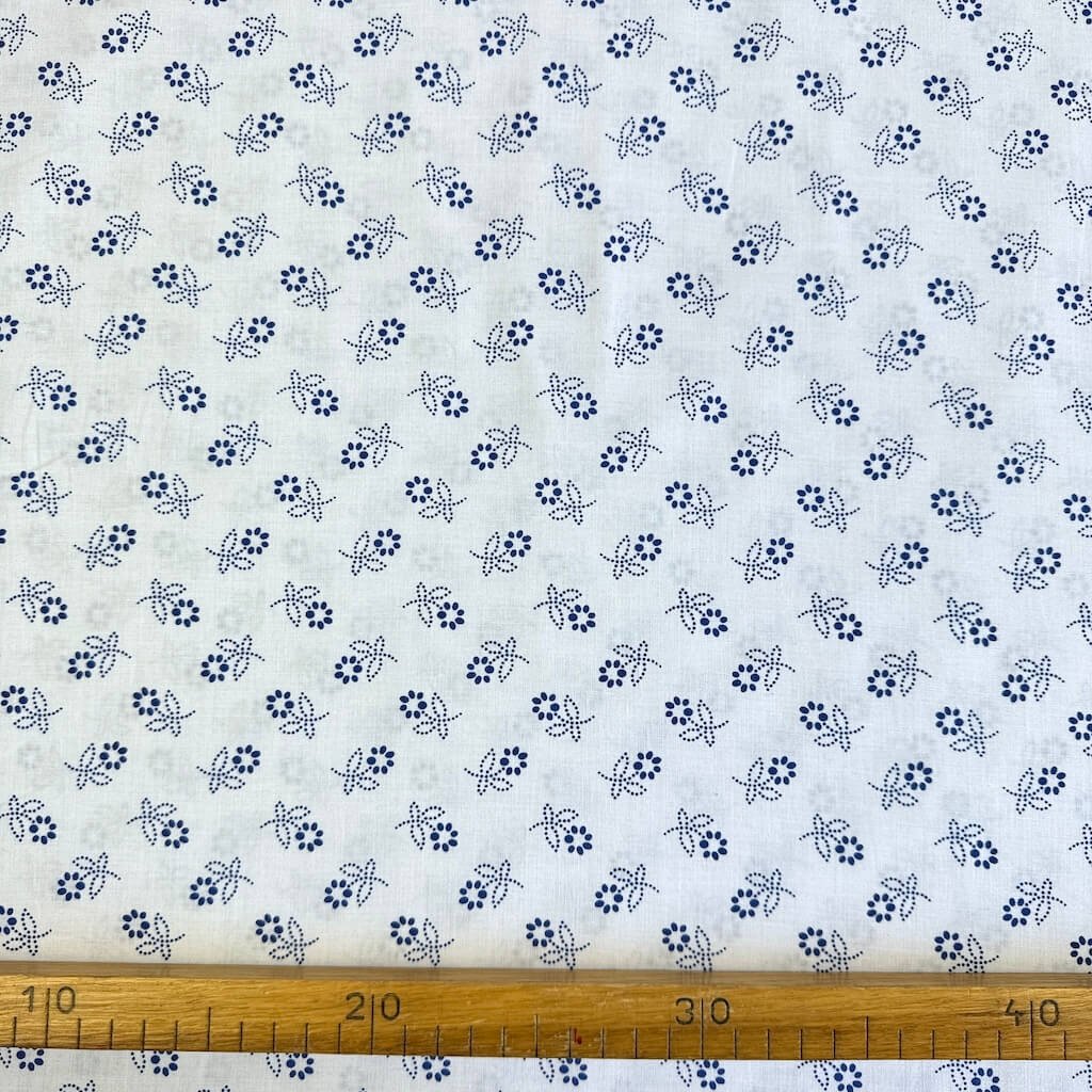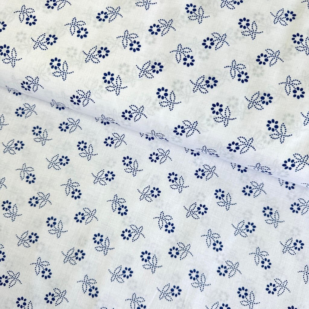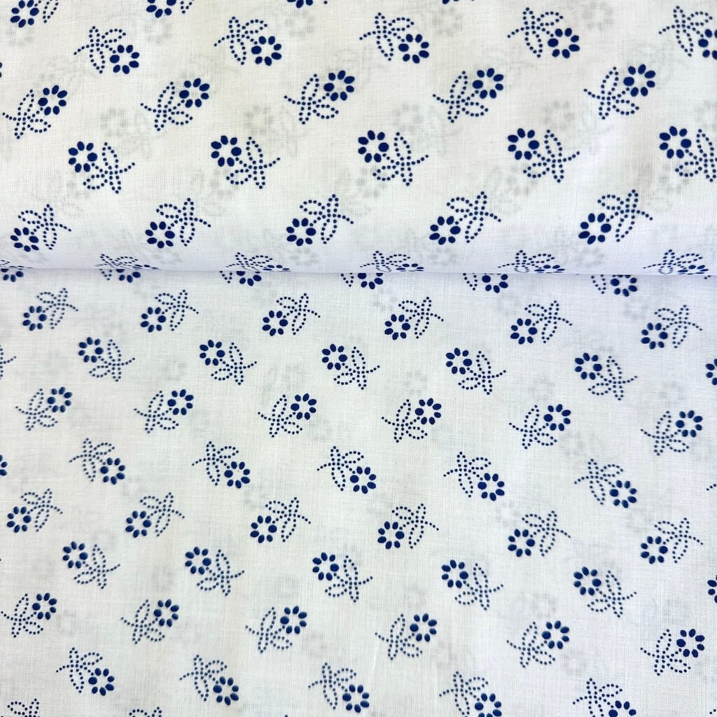 Baumwolle Volksmuster - Blaues Gänseblümchená auf Weiß