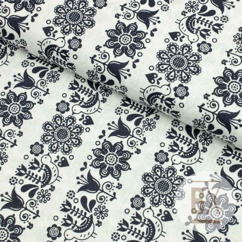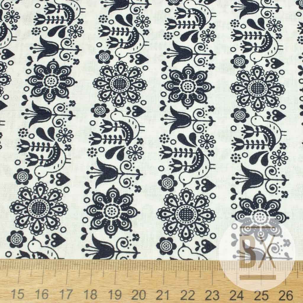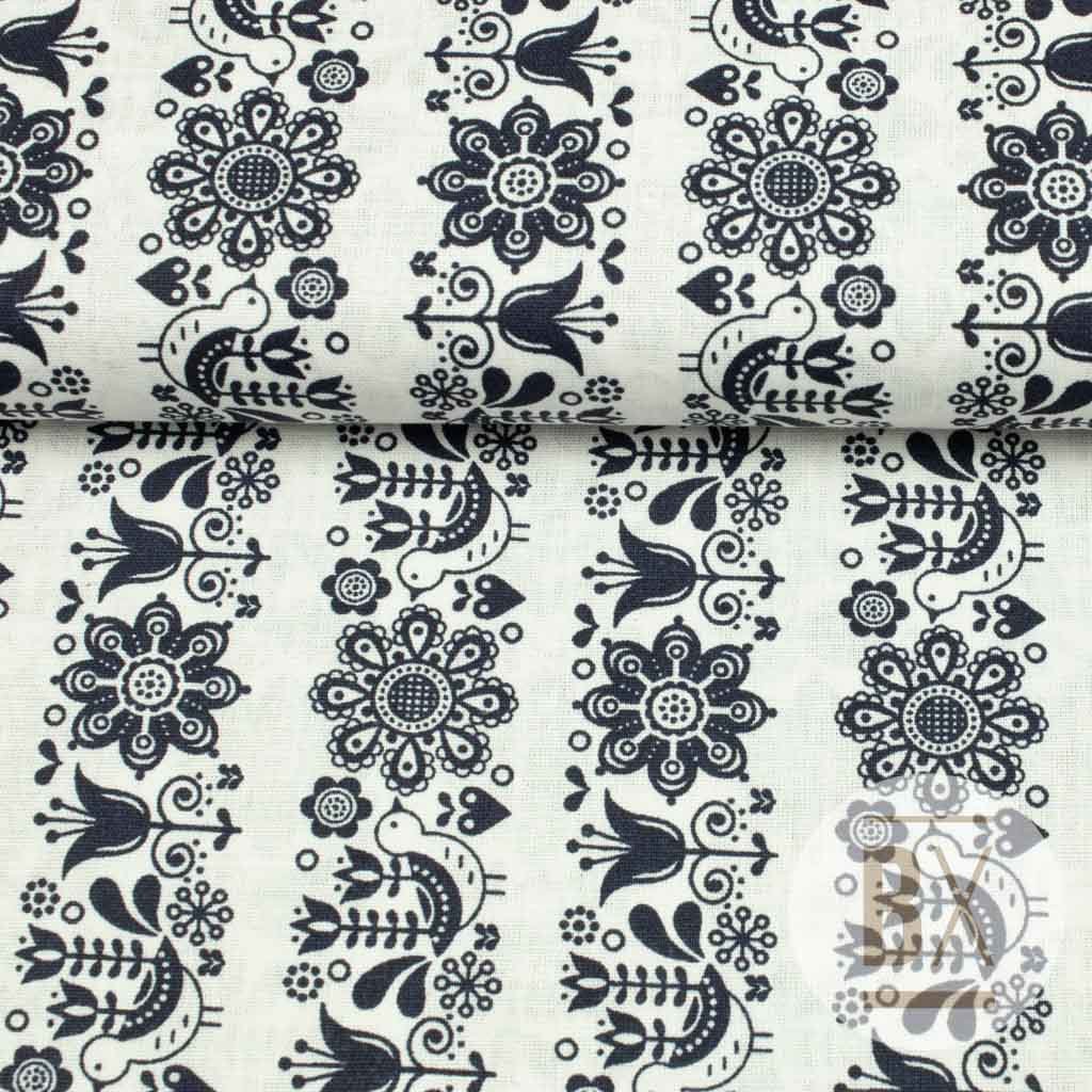 Baumwolle Volksmuster - Blumen Streifen dunkelblau