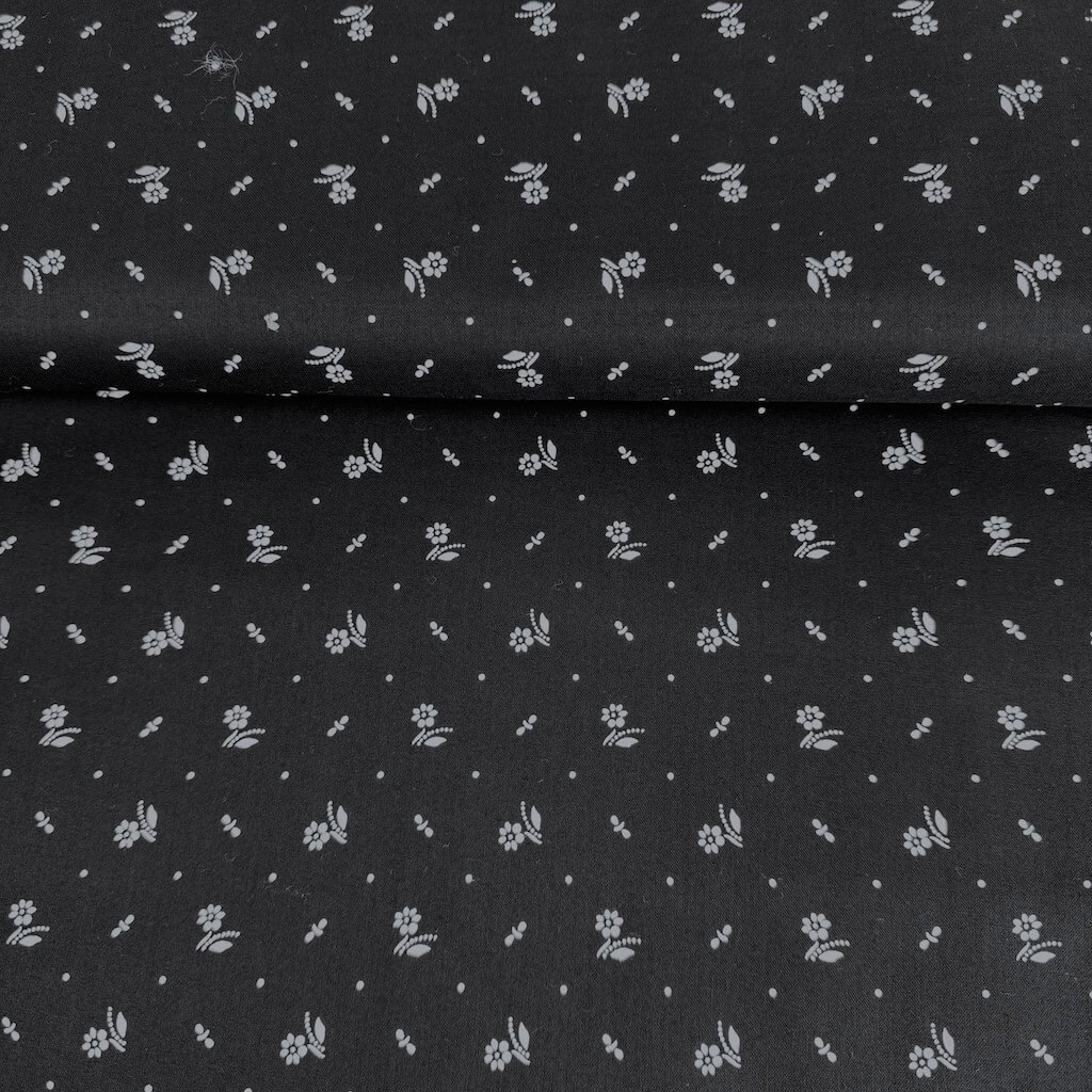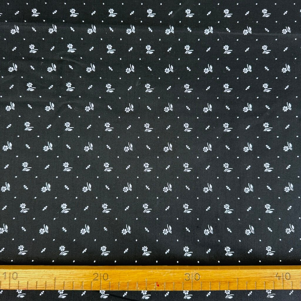 Baumwolle Volksmuster - Mini-Blume auf Schwarz