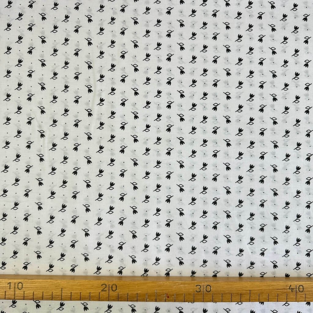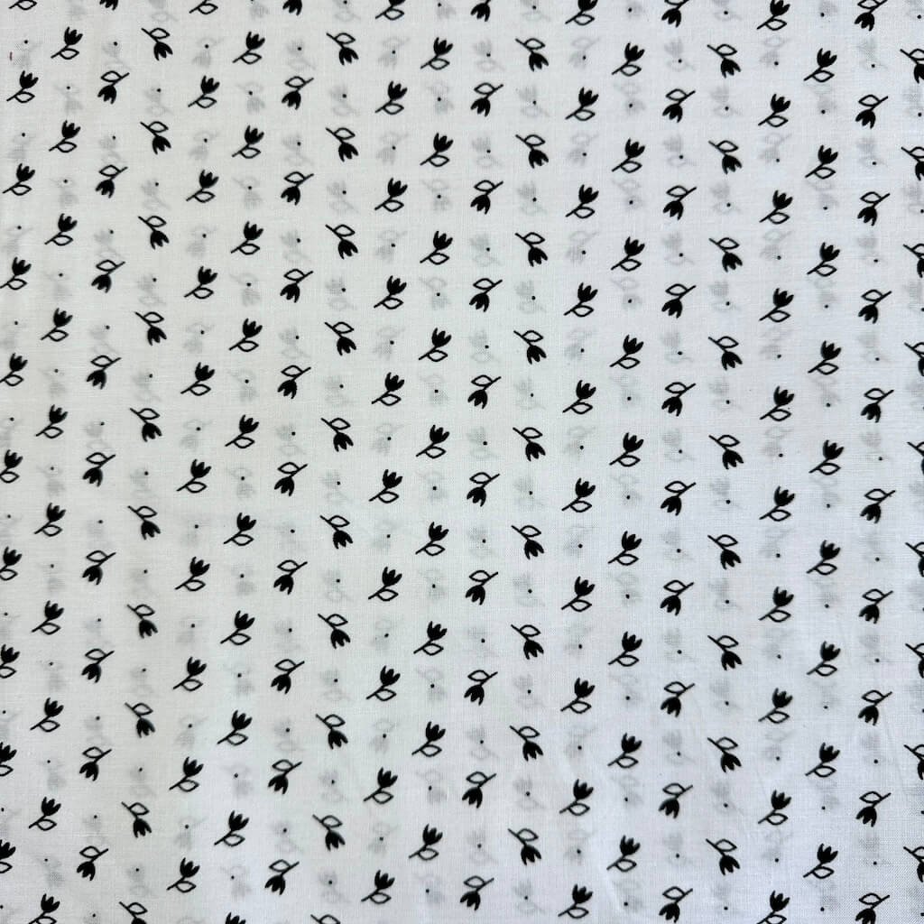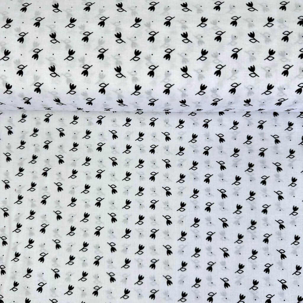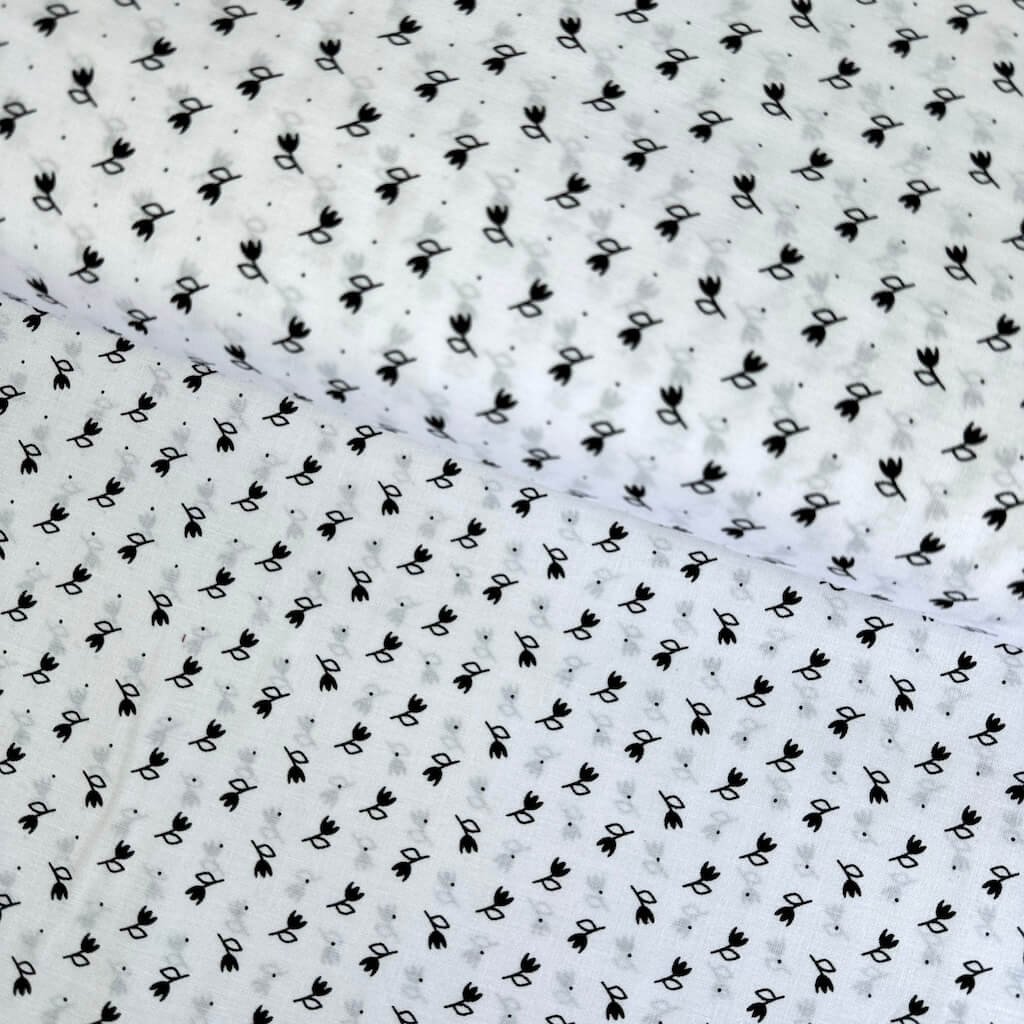 Baumwolle Volksmuster - Schwarze Tulpe auf Weiß