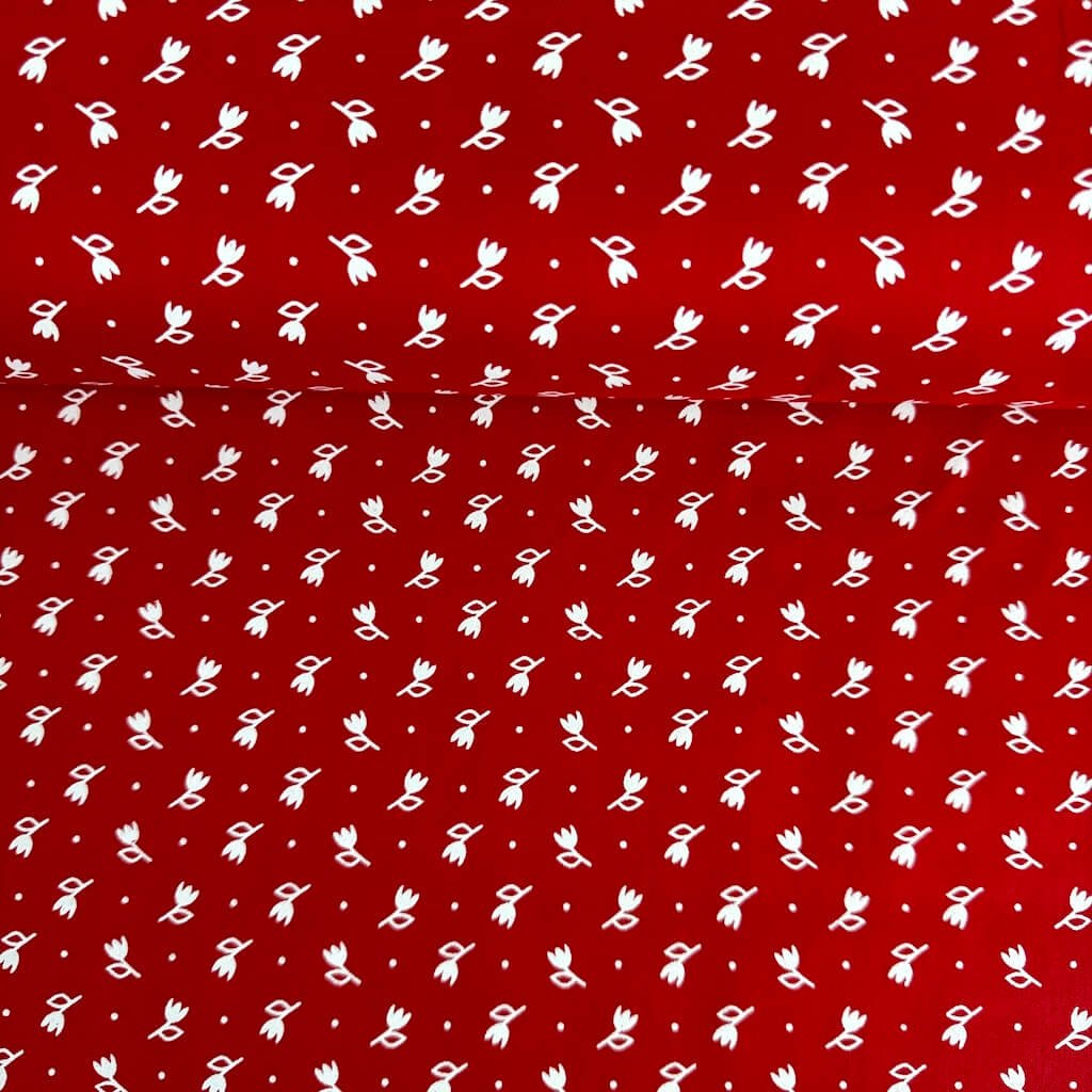 Baumwolle Volksmuster - Weiße Tulpe auf Rot