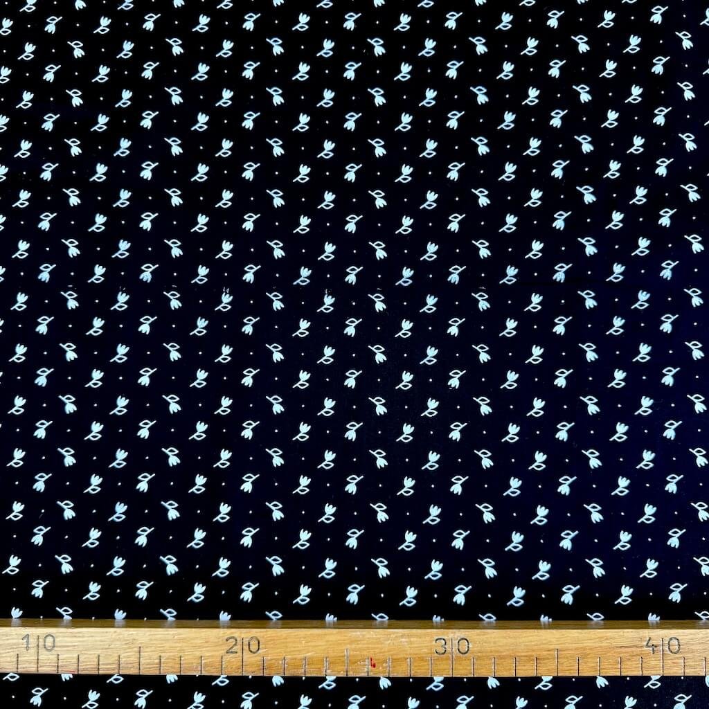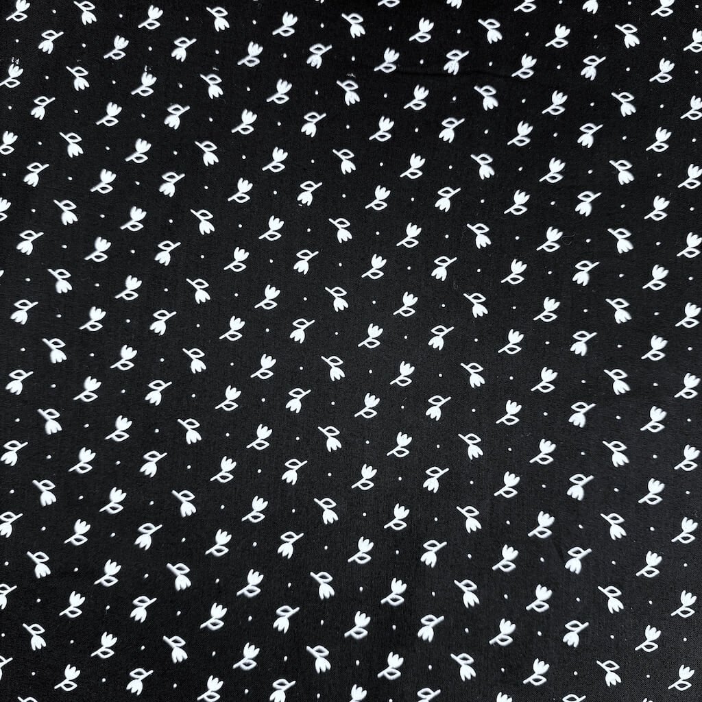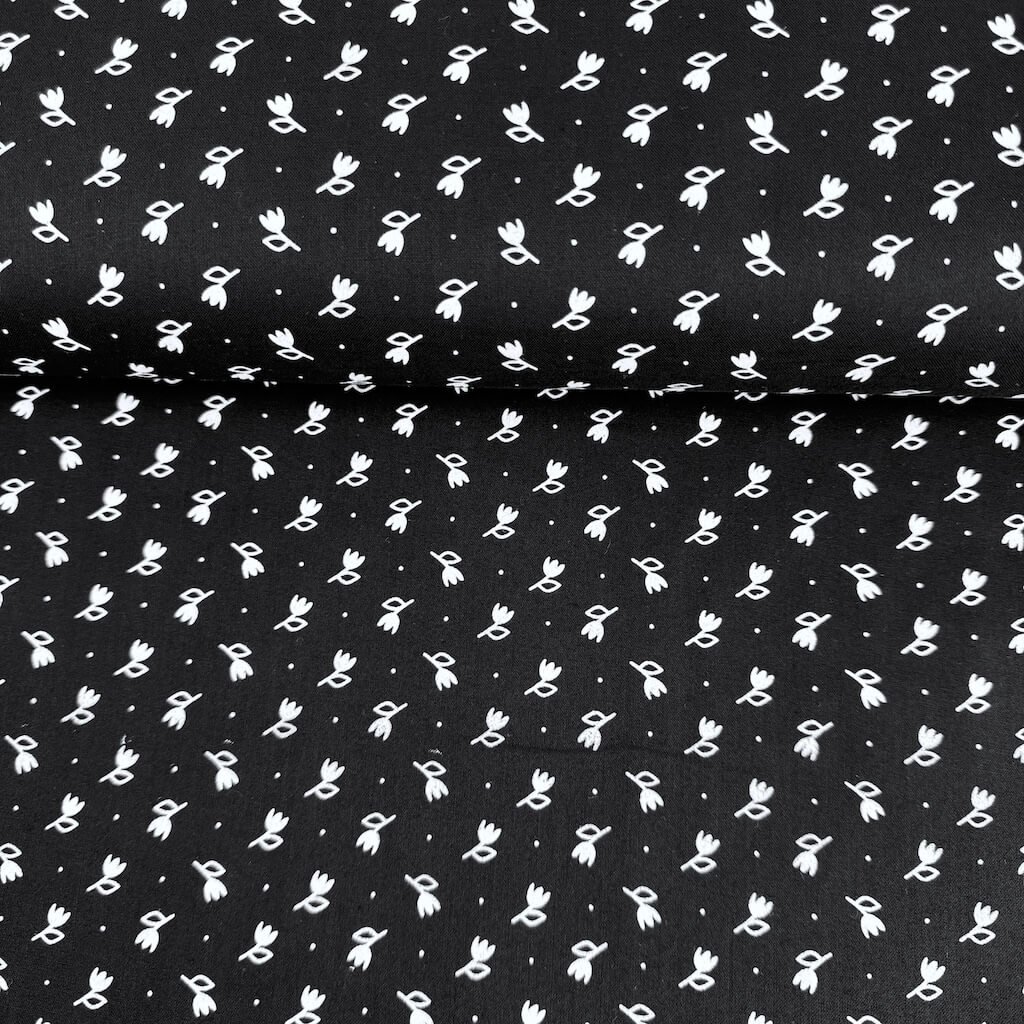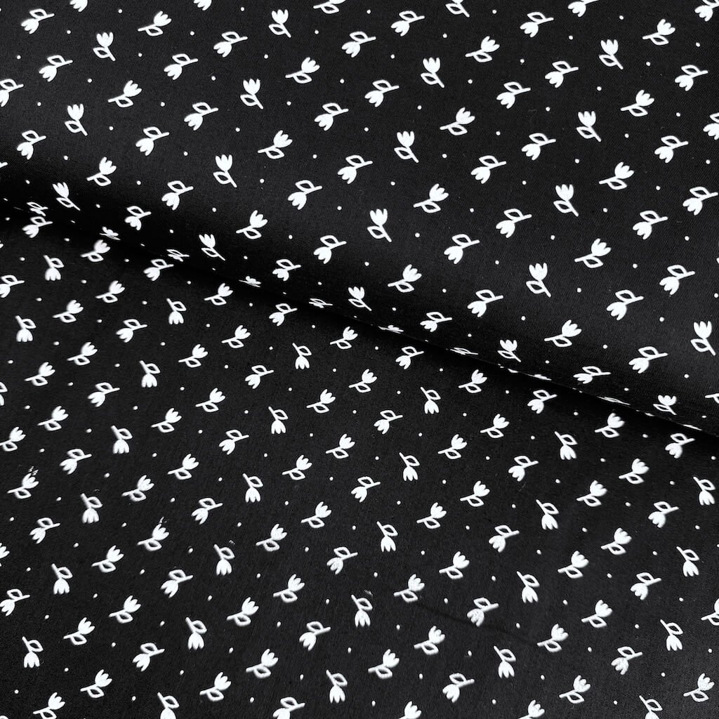 Baumwolle Volksmuster - Weiße Tulpe auf Schwarz