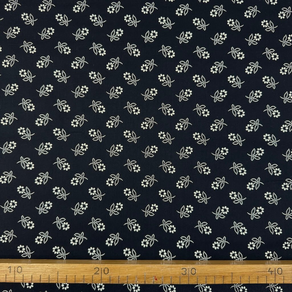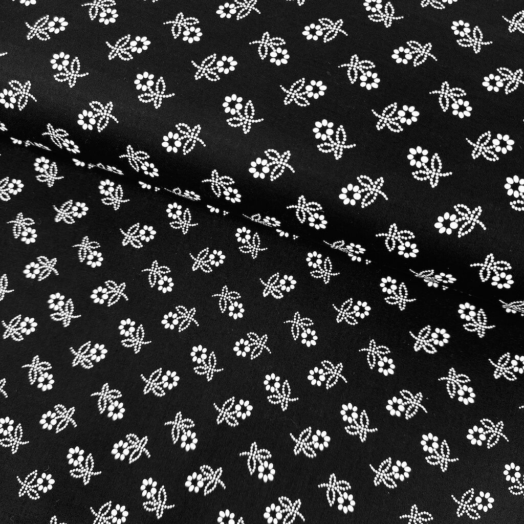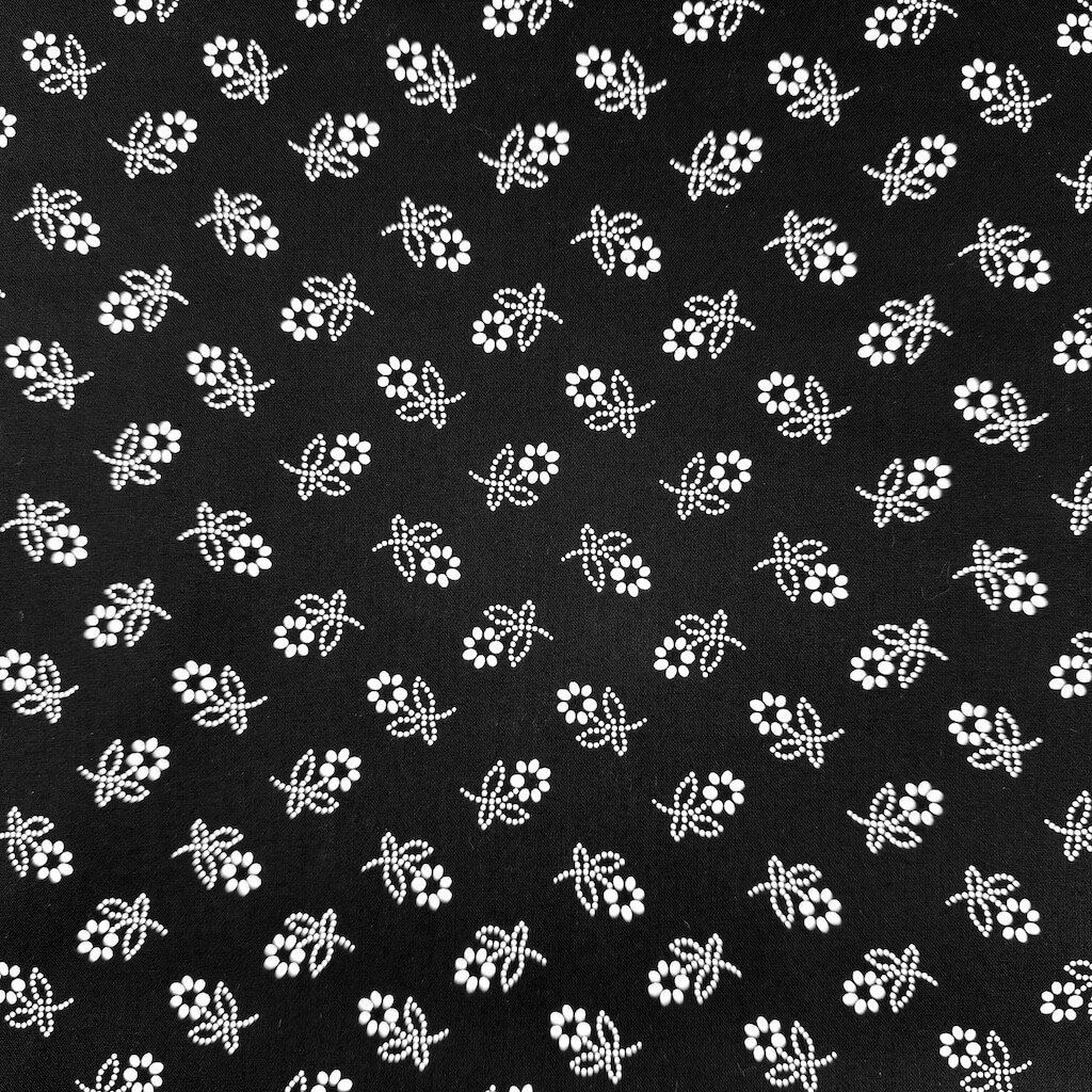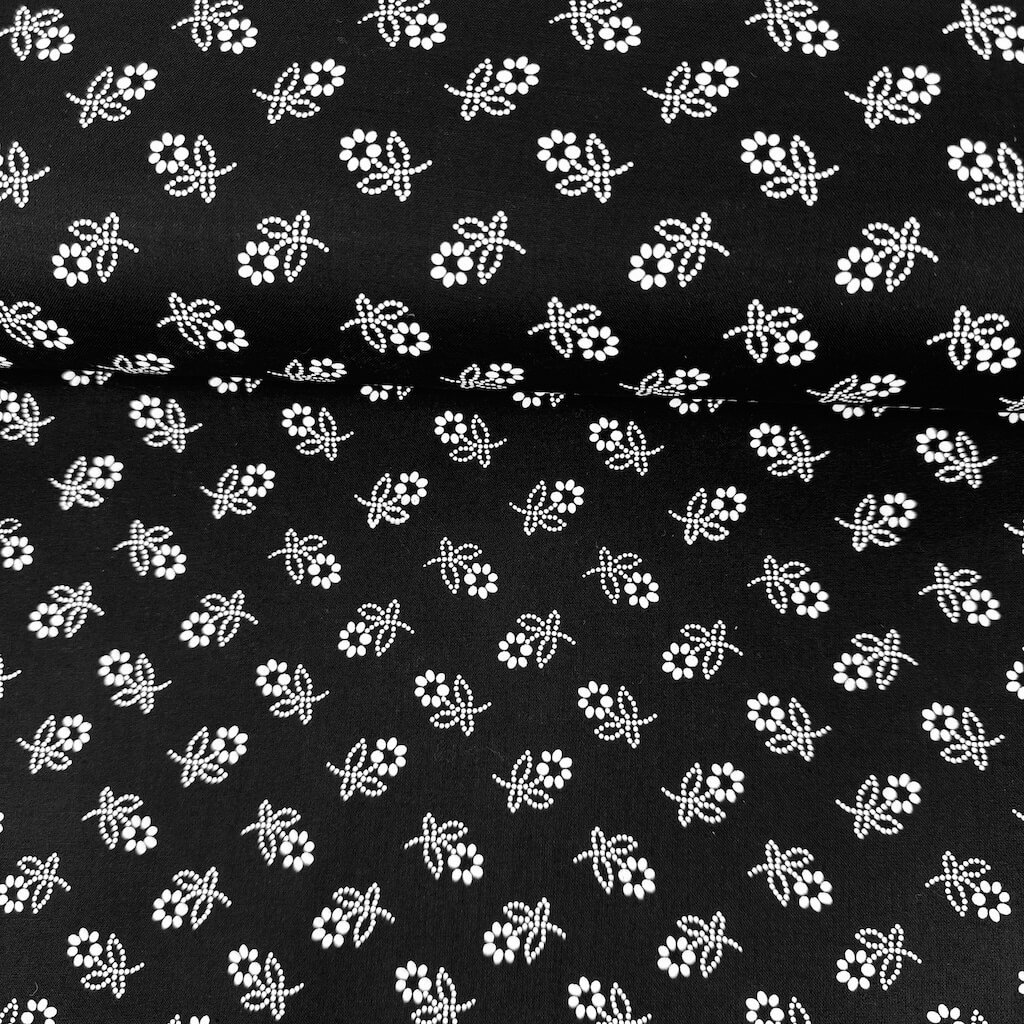 Baumwolle Volksmuster - Weißes Gänseblümchen auf Schwarz