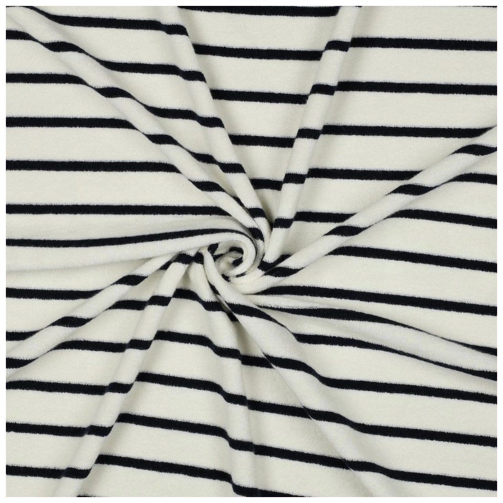 Baumwollfrottee – Ecru mit dunkelblauen Streifen