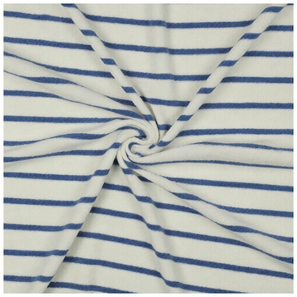 Baumwollfrottee – Ecru mit hellblauen Streifen
