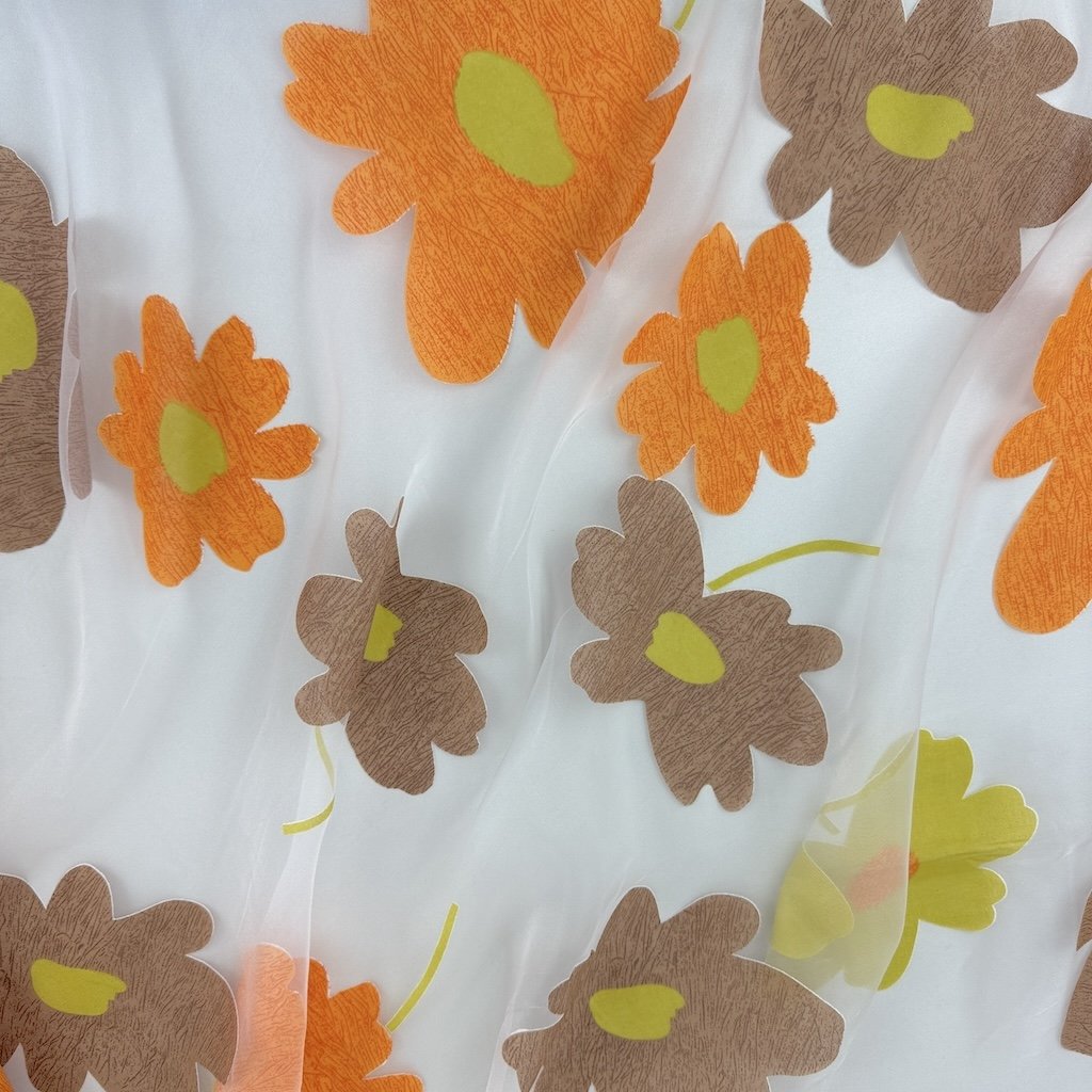 Ein glatter, mattweißer Stoff, der mit seinem farbenfrohen Retro-Stil beeindruckt.
