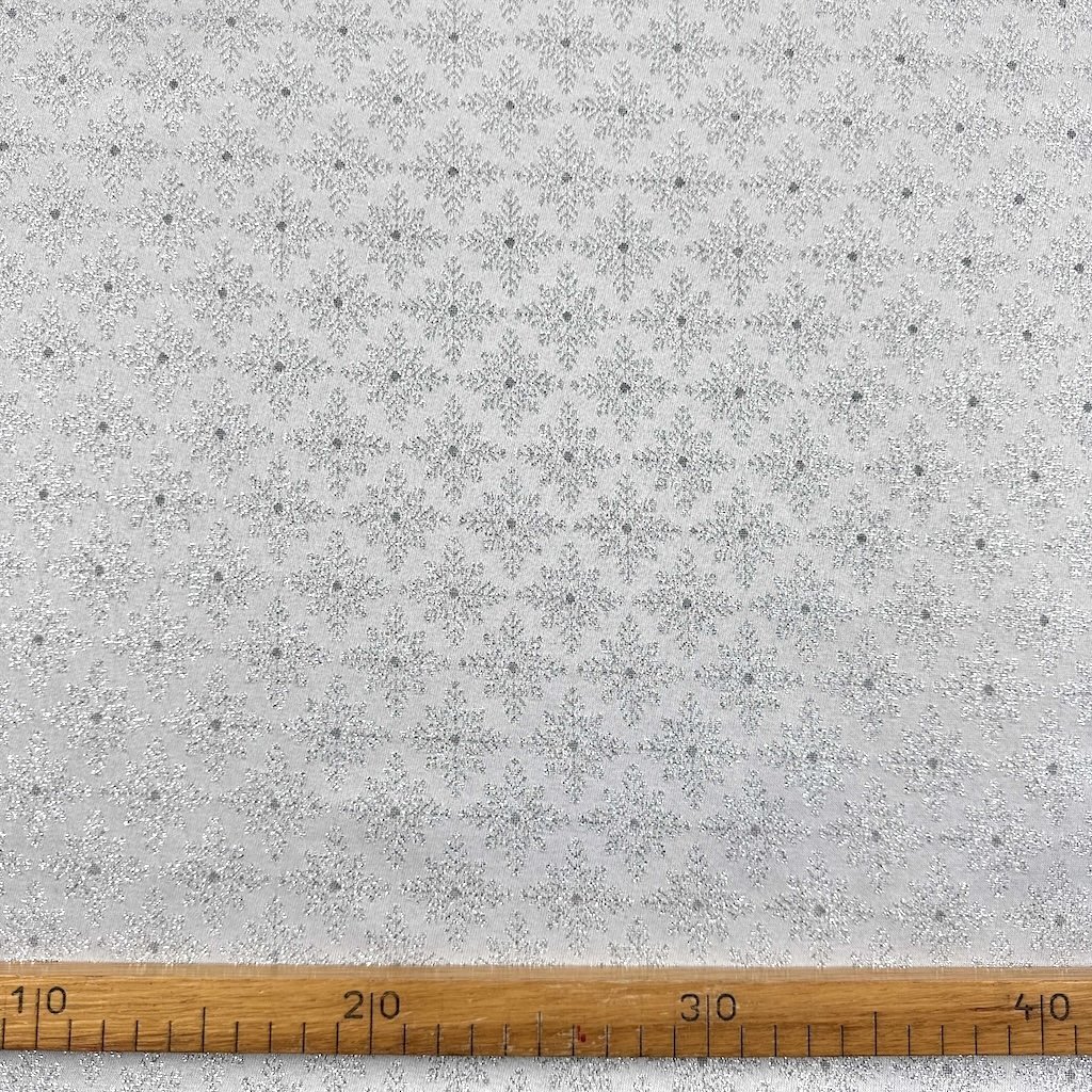 Dekostoff - Weihnachten Lurex - Silberne Flocken auf Grau