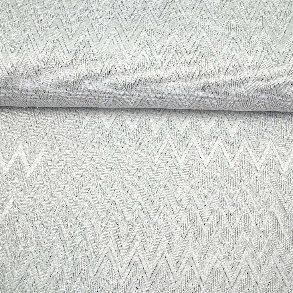 Dekostoff - Weihnachten Lurex - Silberner Zickzack auf Weiß