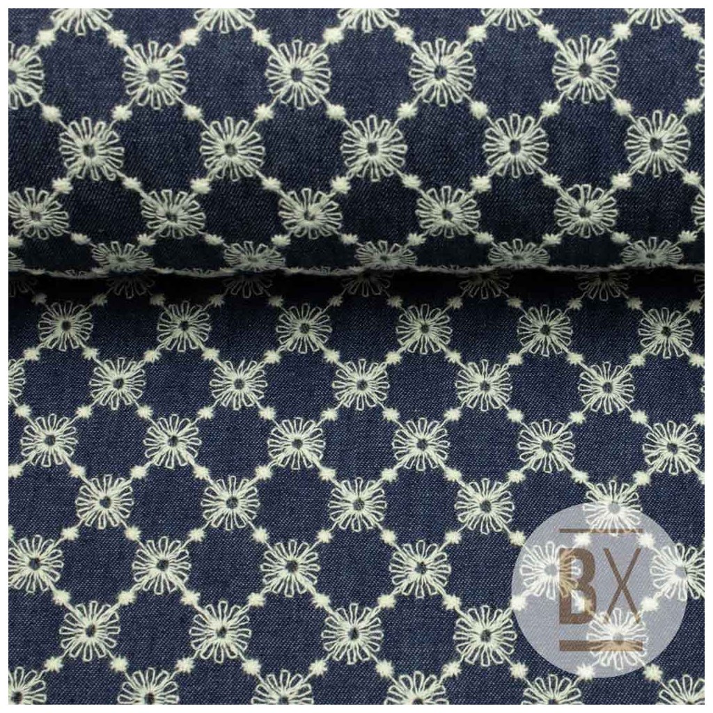 Denim Muster - Blumenstickerei dunkelblauer Denim
