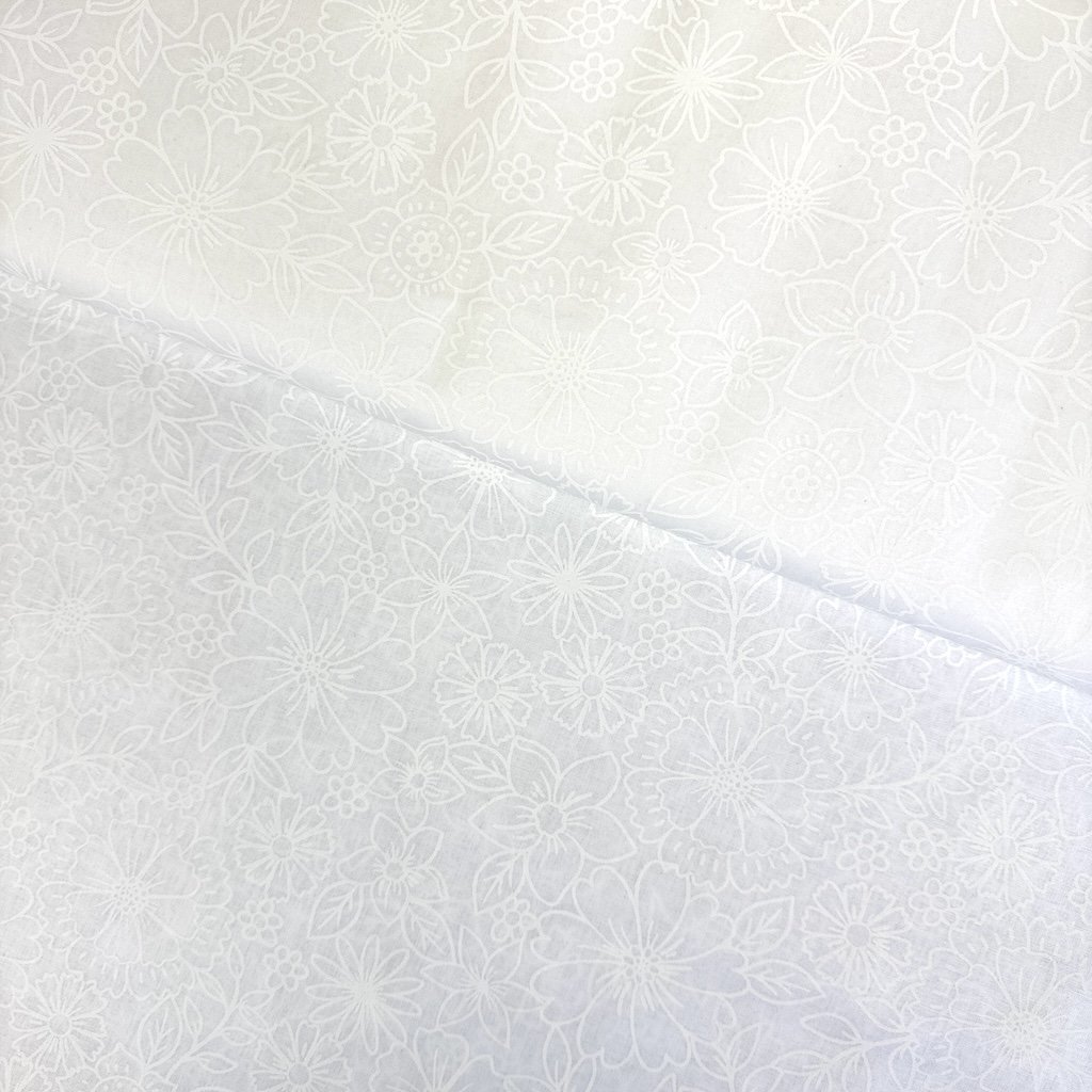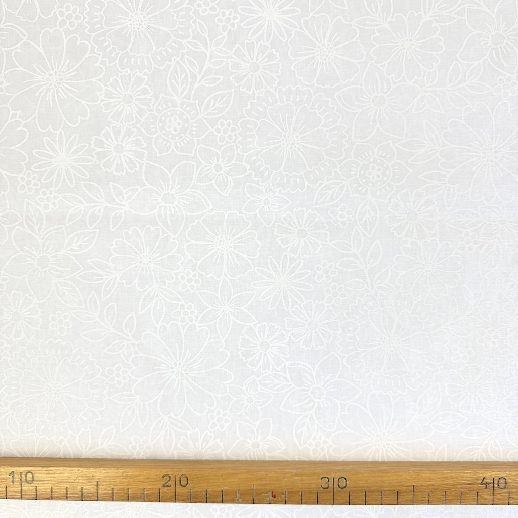 Gemusterte Baumwolle – Weiße Blumen auf Butter