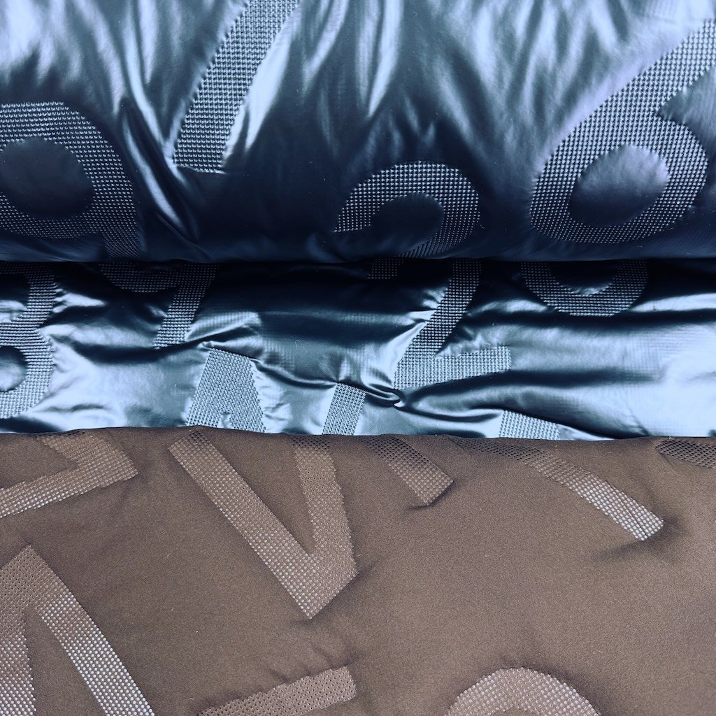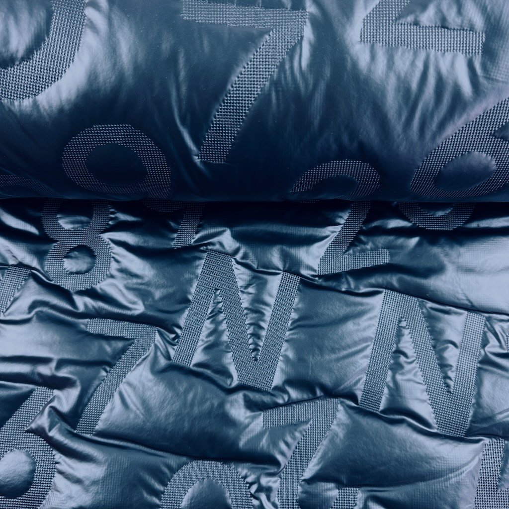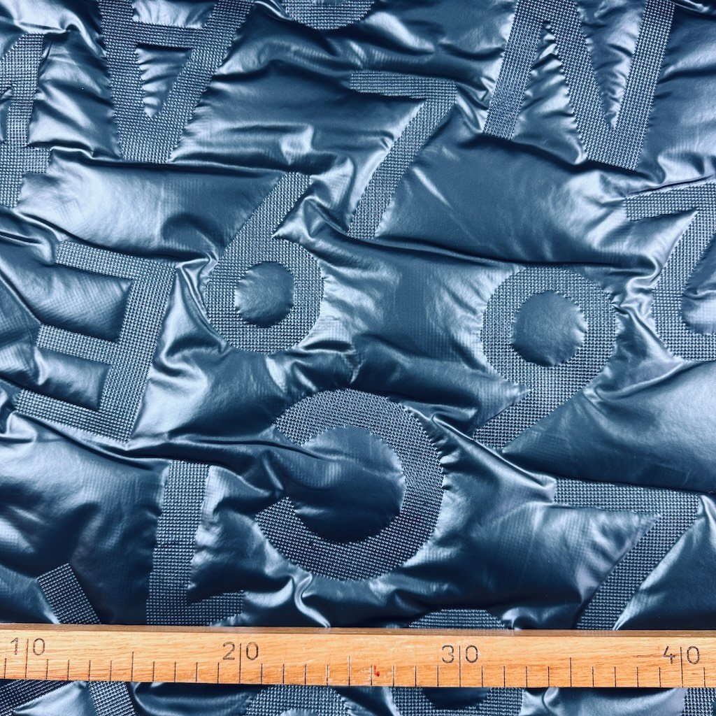 Gesteppter Windjackenstoff Alphabet - Petroleumblau