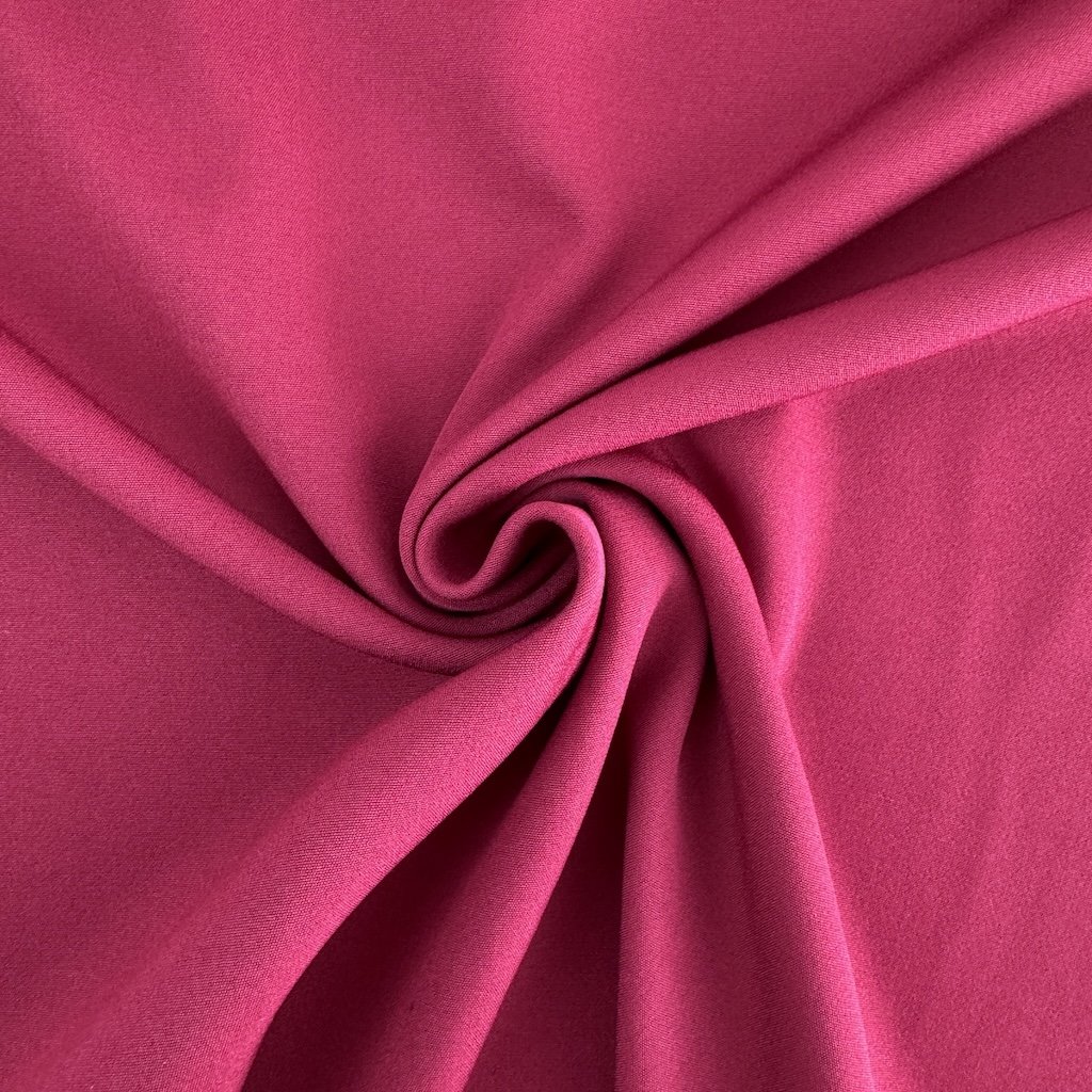 Der Stoff mit einem Flächengewicht von 420 g/m² und einer Zusammensetzung von 95 % Polyester und 5 % Lycra ist ideal für Kleider, Röcke, Tops, Tuniken, gefütterte und ungefütterte Kostüme, Hosen, Caprihosen und Shorts.