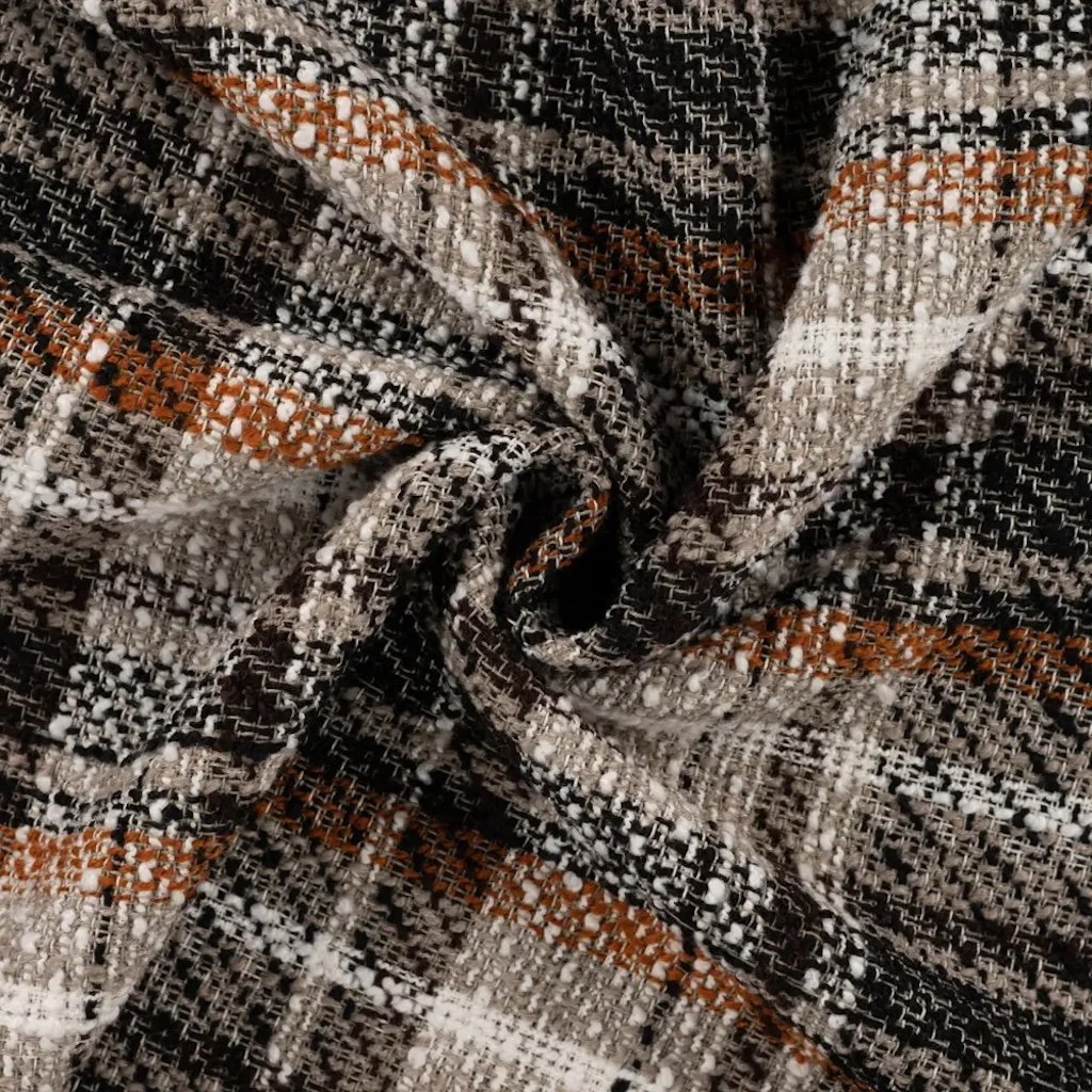 Der Bouclé-Mantelstoff Chanel ist ein hochwertiger Stoff mit einer starken, sichtbaren Struktur und einem höheren Flächengewicht von 420 g/m², was ihn zu einer ausgezeichneten Wahl für elegante Kleidungsstücke und dekorative Anwendungen macht. Geeignet für alle, die einen Stoff mit optischer Wirkung und Struktur suchen – ideal für den zeitlosen „Chanel“-Stil oder Modeentwürfe mit Premium-Charakter. Bekleidungsvorschläge: Blazer, Jacken, Mäntel, Kostüme, elegante Röcke. Innenraum- oder Dekorationsnutzung: elegante Bezüge, Kissen, Textilpaneele.