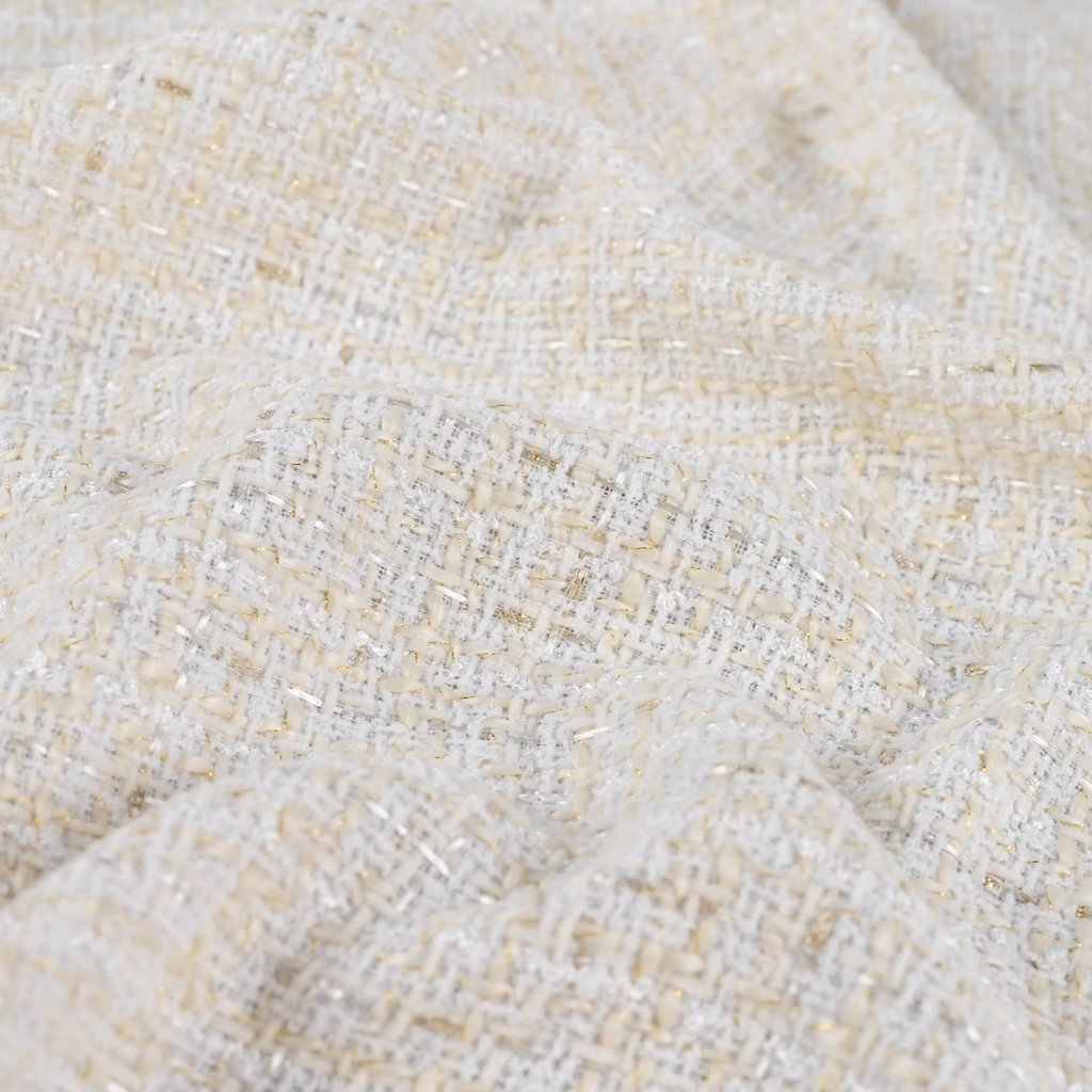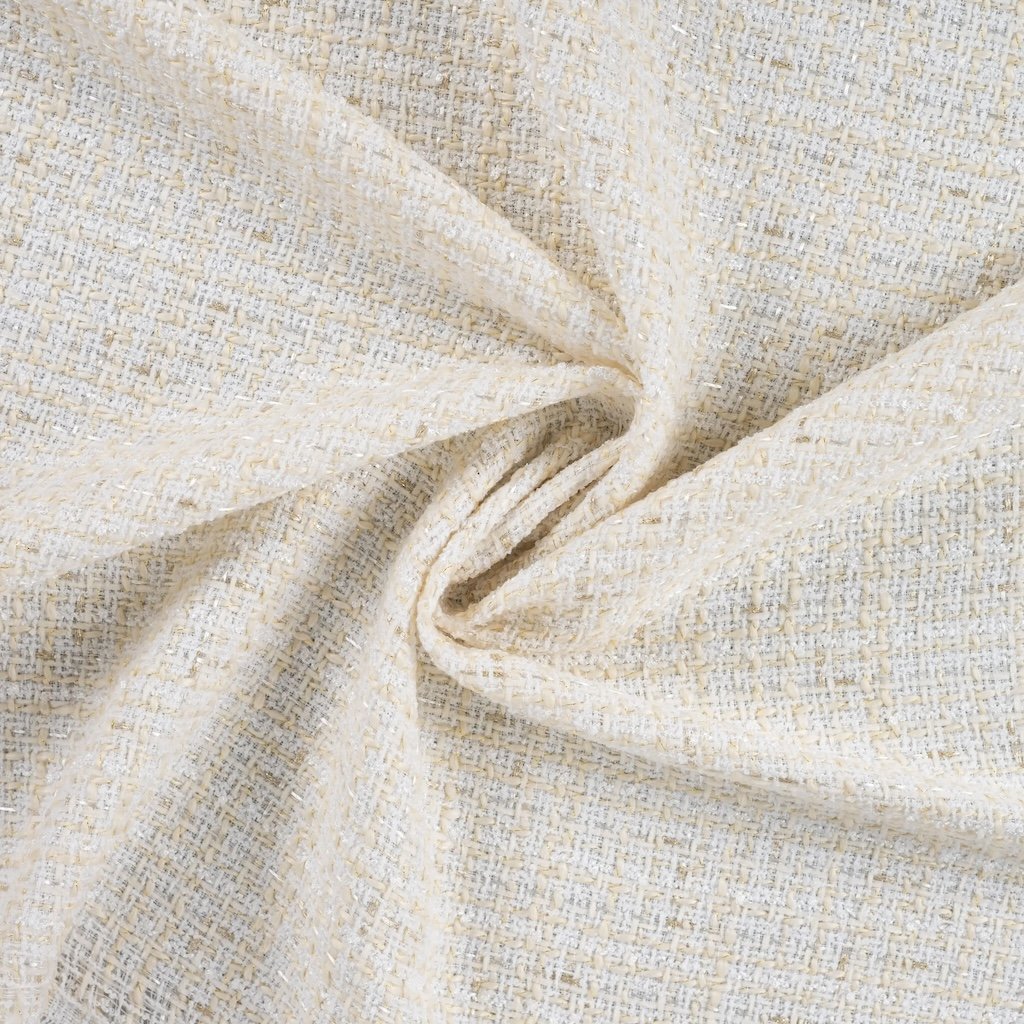 Der Stoff Chanel Bouclé in der hellen „Ecru“-Farbe ist ein eleganter Bouclé-Stoff mit feiner Schlingenstruktur, der optisch an klassische High-Fashion-Blazer der Marke Chanel erinnert. Es ist ein zeitloses Material, das sich ideal für Blazer, Mäntel, Westen und Designprojekte mit Premium-Charakter eignet.