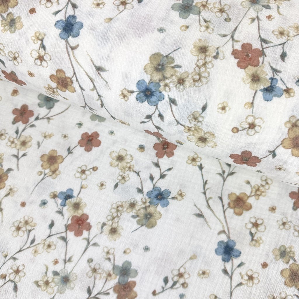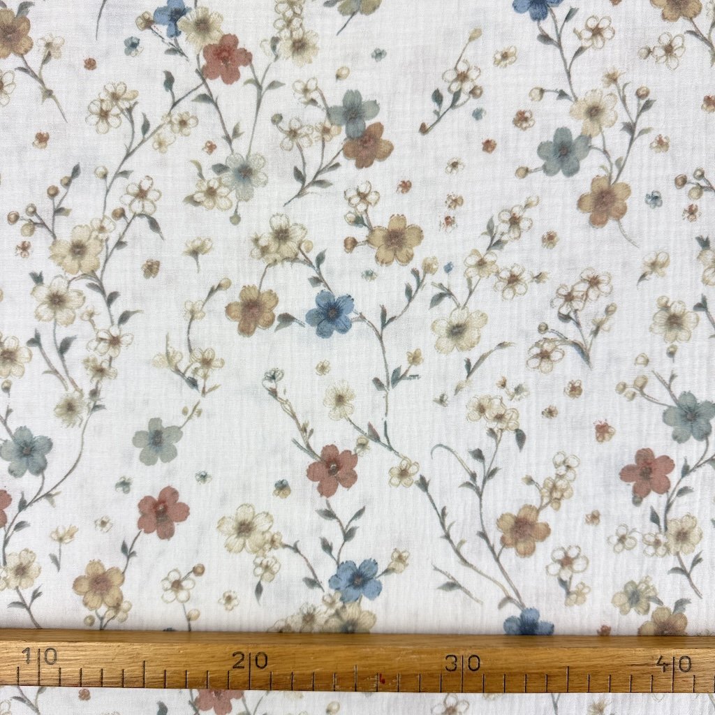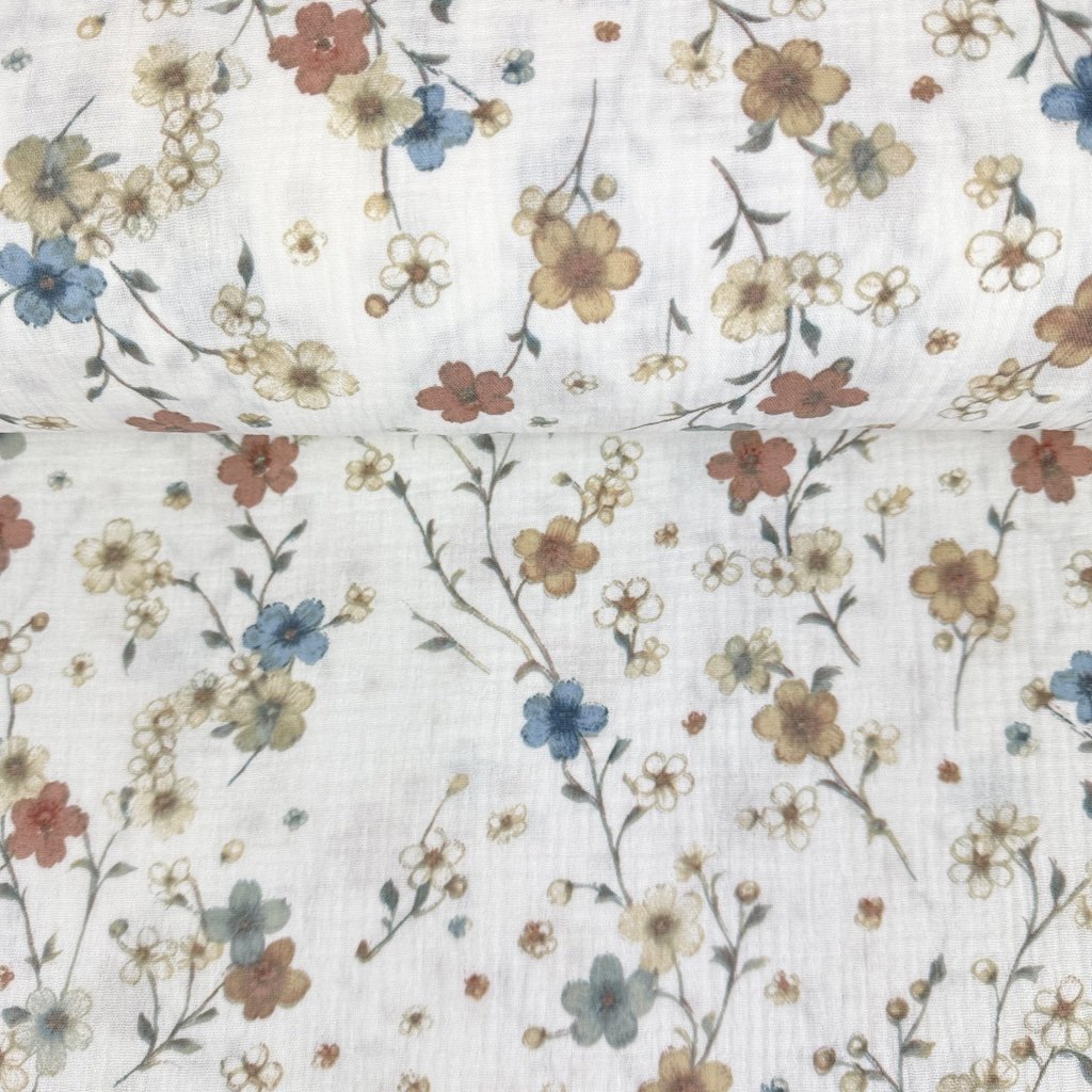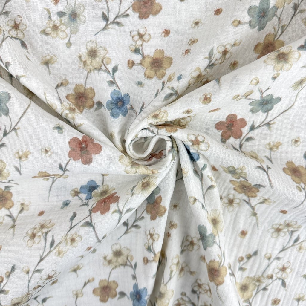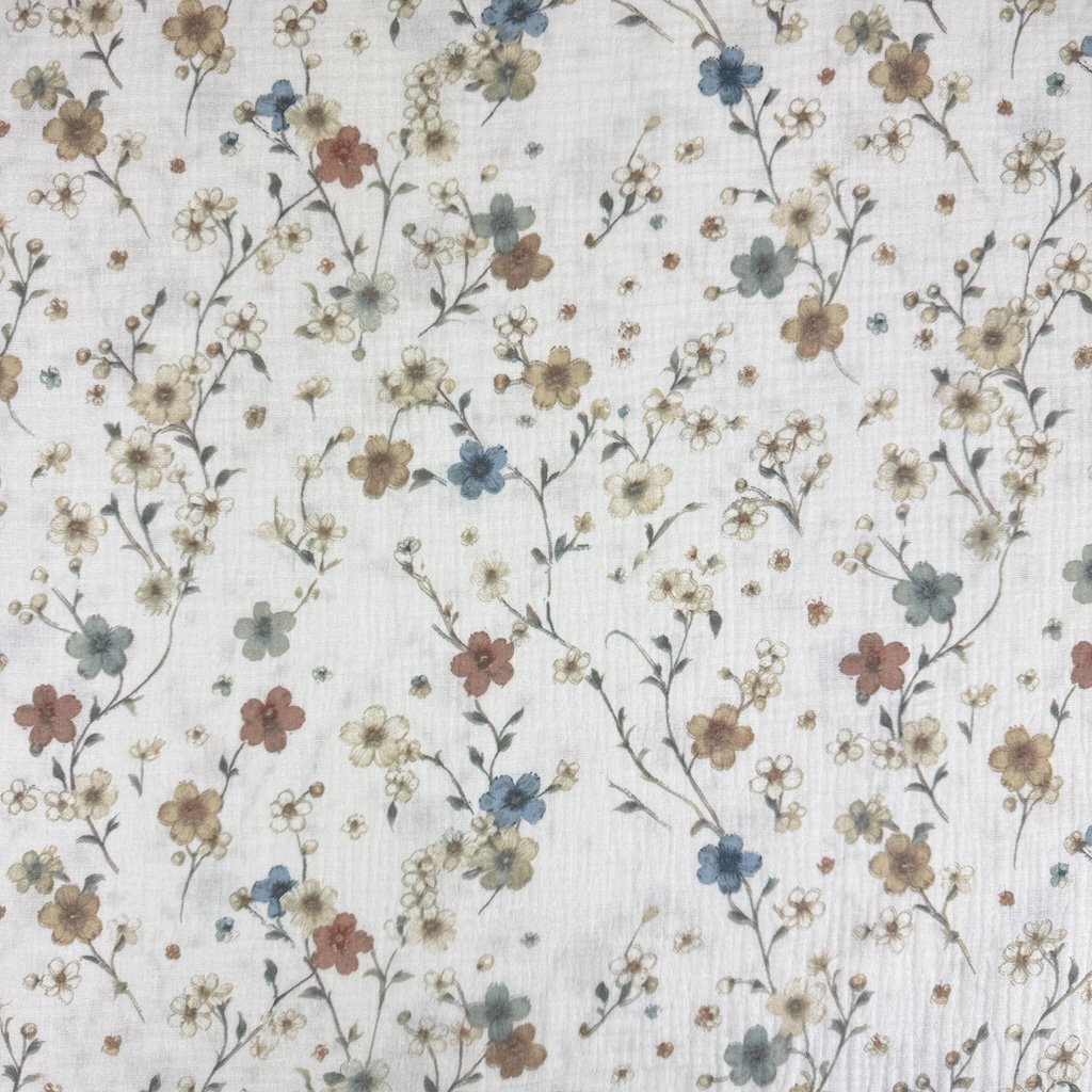 Gemusterter Musselin / Doppelgaze, auch als Mullstoff bekannt, ist ein feiner, luftiger und besonders angenehmer Stoff aus 100 % Baumwolle. Dank seiner typischen gekreppten (gewellten) Struktur ist er von Natur aus leicht elastisch, weich im Griff und bügelfrei. Die doppelte Gaze sorgt für Stabilität, während Leichtigkeit und Atmungsaktivität erhalten bleiben. Elegante Muster verleihen dem Stoff eine originelle Optik, die sich ideal für Kinder- und Damenbekleidung sowie für Wohnaccessoires eignet. Musselin ist besonders beliebt für Sommerkleider, Blusen, Röcke, Hemden, Babybodys, Einschlagtücher, Decken oder Tücher.