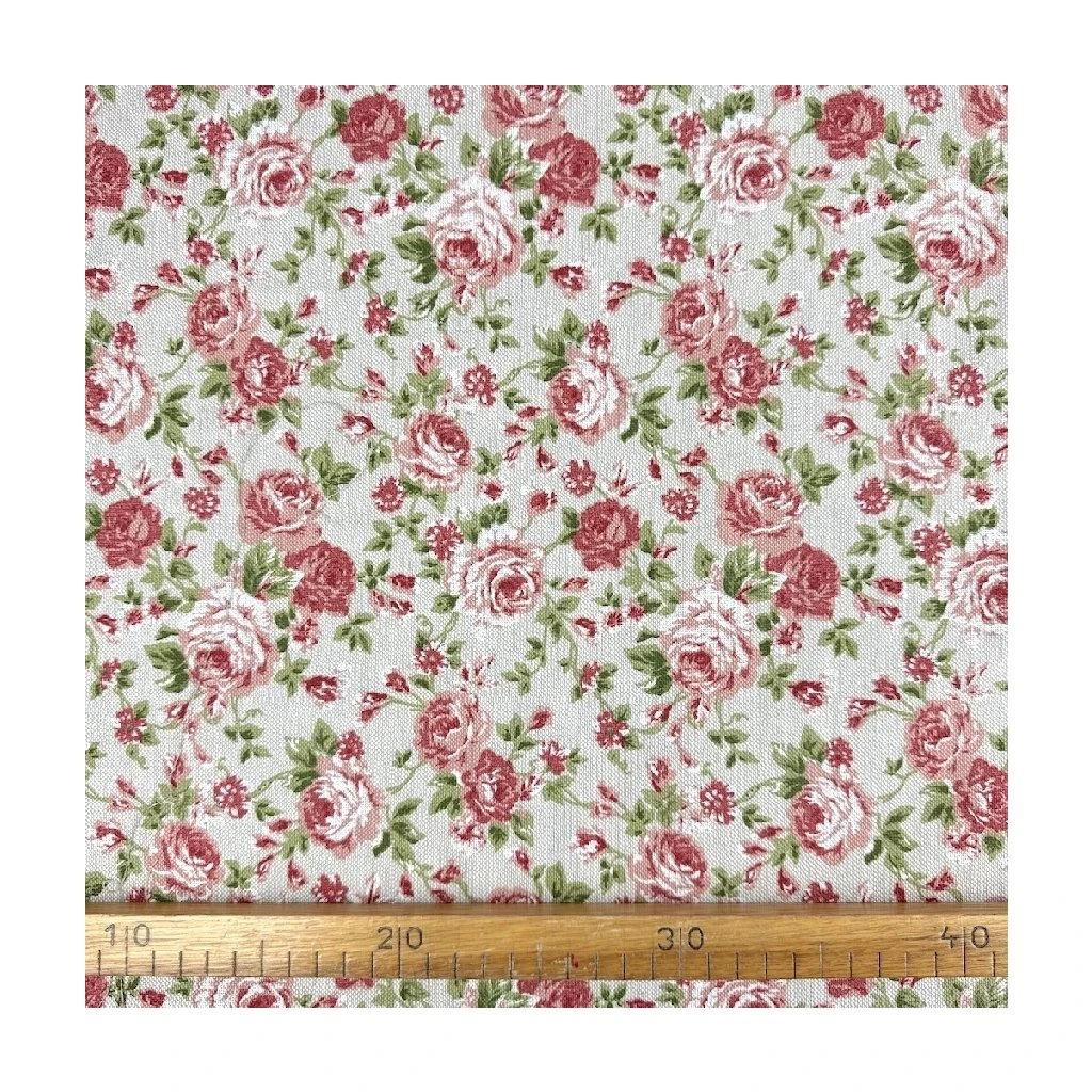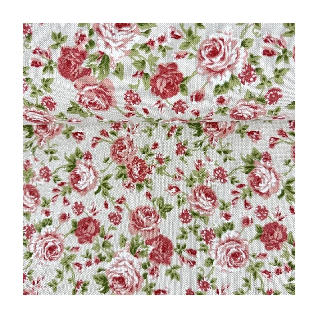 Panama Digital – Röschen auf naturfarbenem Hintergrund