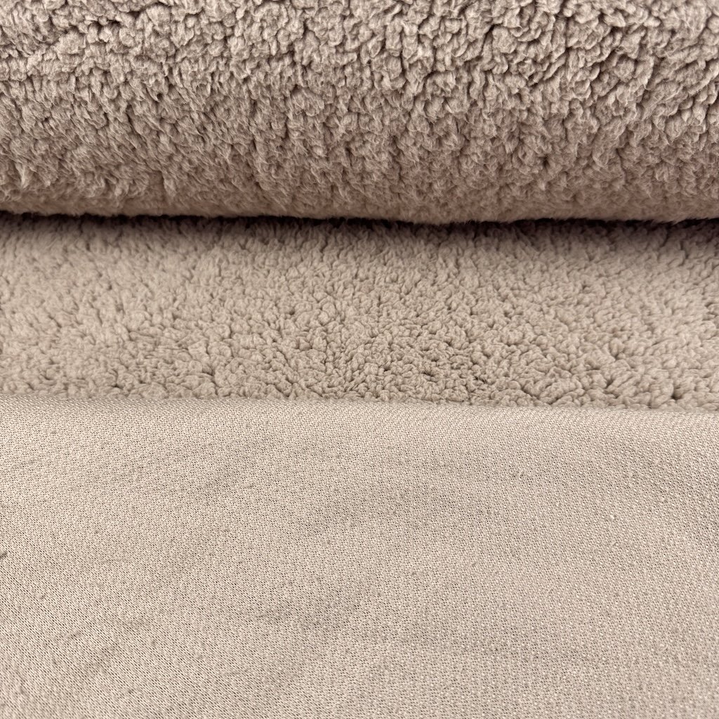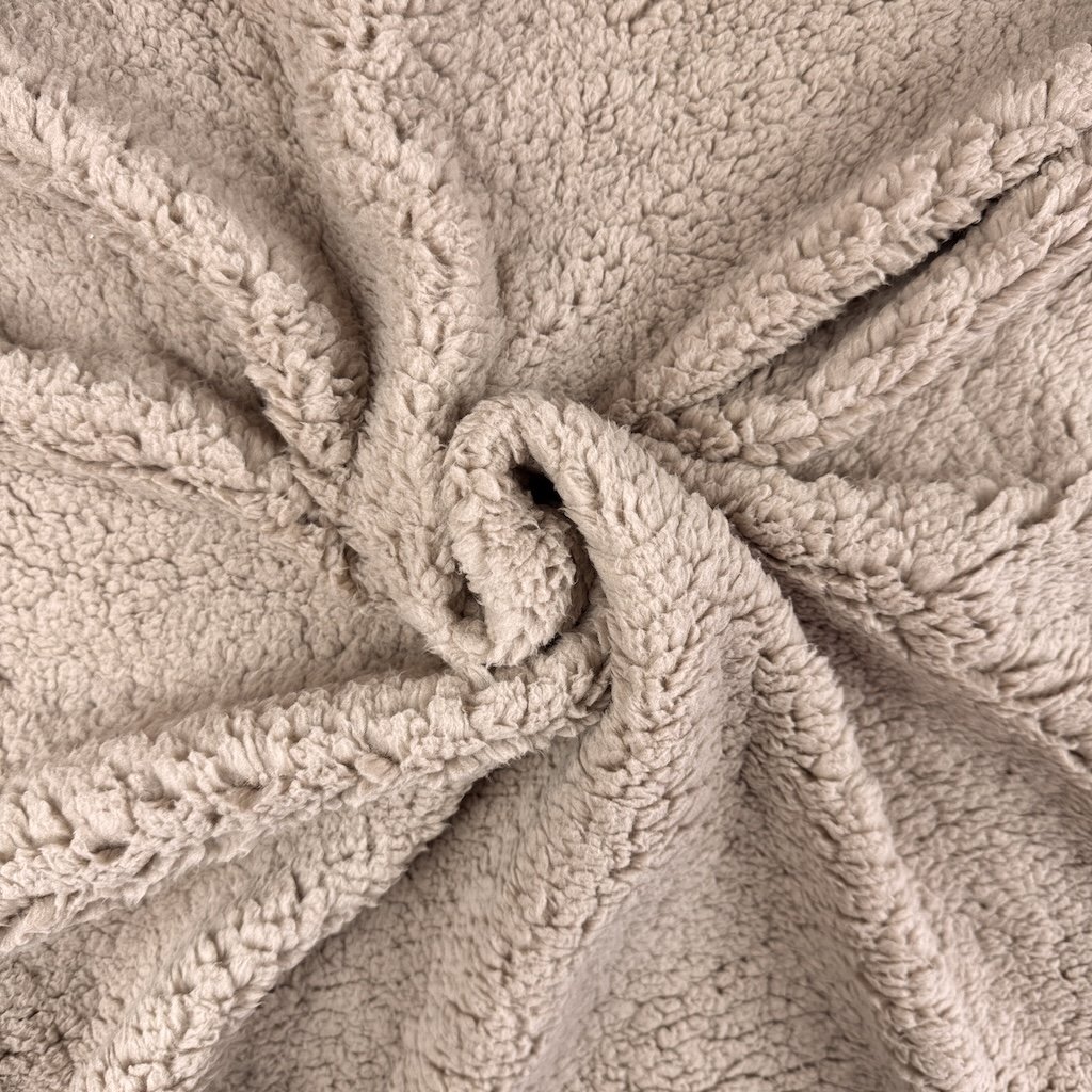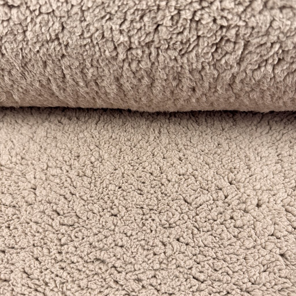 Sherpa-Lamm mit einem Gewicht von 220 g/m2 ist ein sehr feiner und weicher Stoff, ideal für wärmende Kleidung wie Sweatshirts, Mützen, Halstücher, aber auch für das Futter von Decken, Bettdecken, Kissen, Fusäcken.