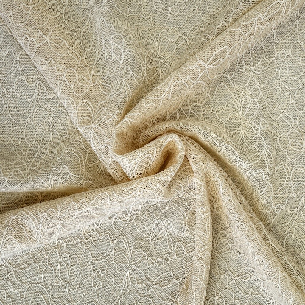 Elegante Spitze mit verspielten, raffinierten Details verleiht jedem Stück eine zarte und romantische Note. Durch ihre Elastizität passt sie sich hervorragend der Figur an, sorgt für maximalen Tragekomfort und uneingeschränkte Bewegungsfreiheit. Ideal zum Nähen von Unterwäsche, eleganten Blusen, Kleidern oder Tanzkostümen.