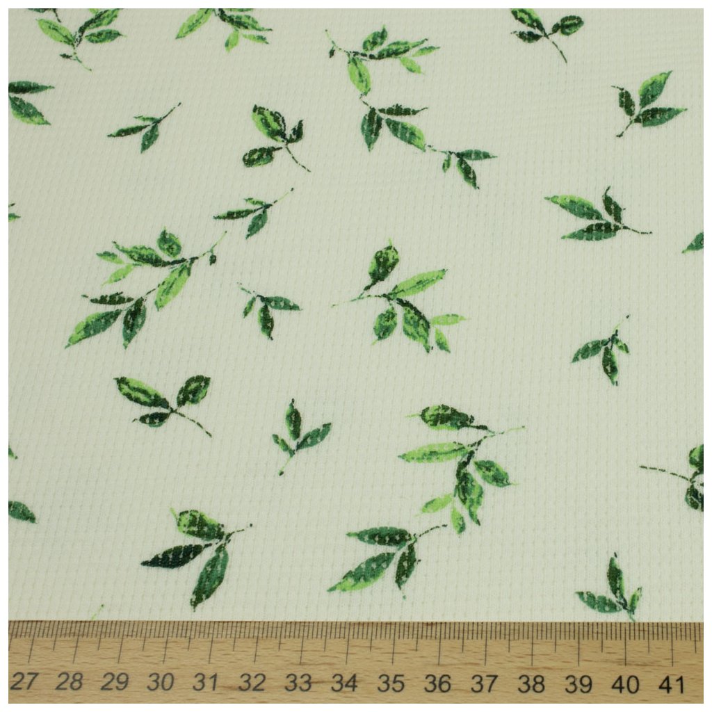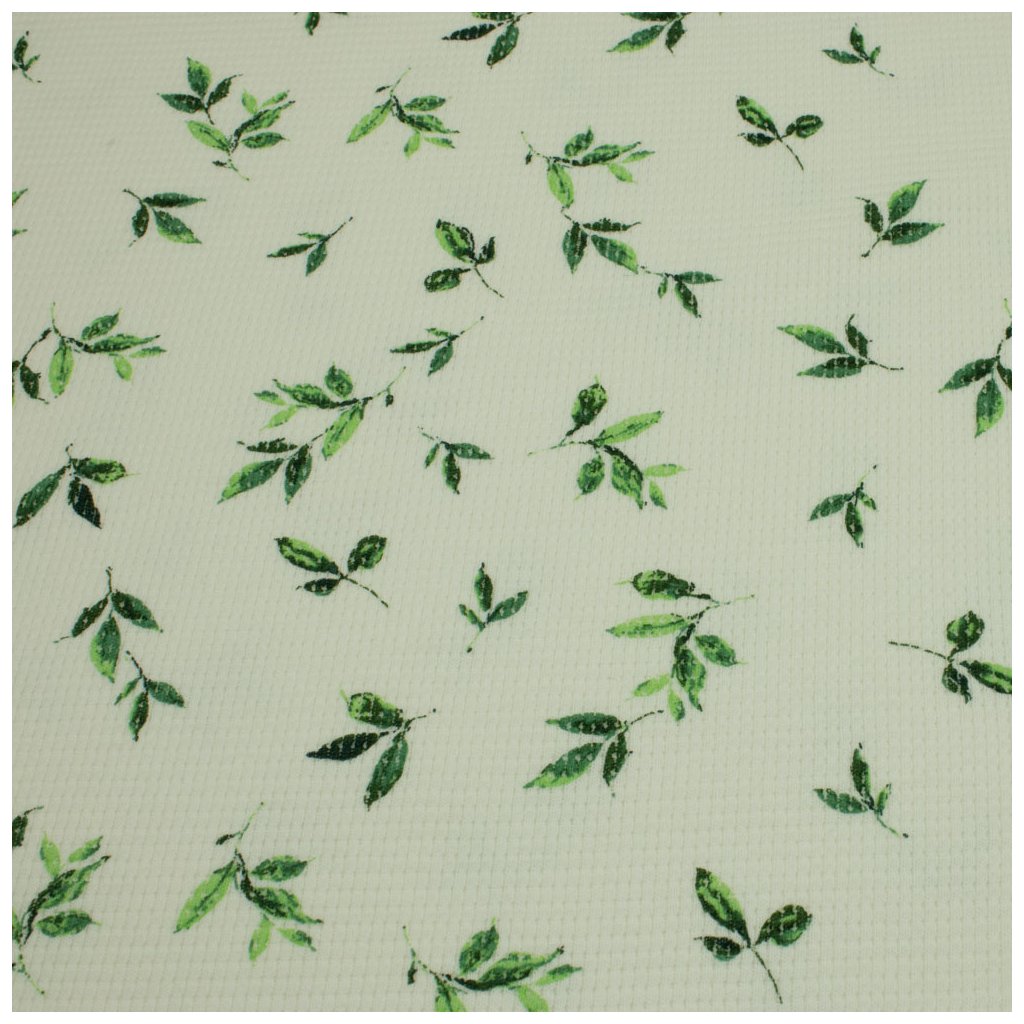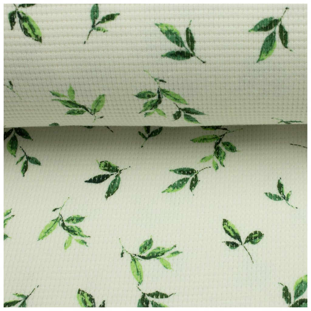 Strickstoff Waffel Natur - Grüne Blätter