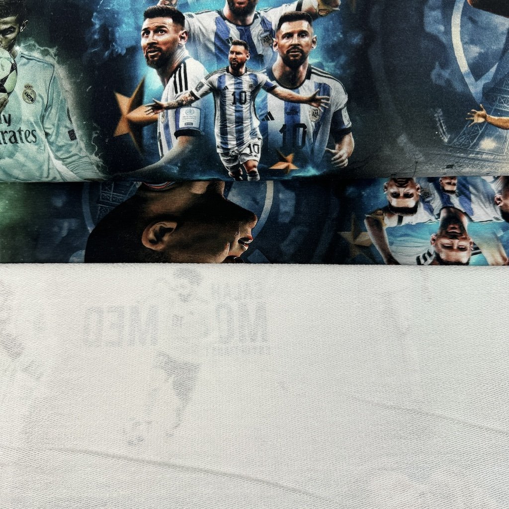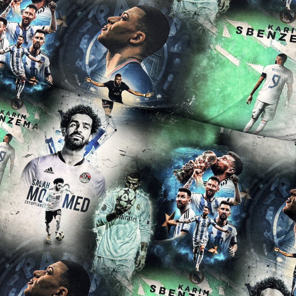 Hochwertiges Gestrick mit Digitaldruck für hohe Farbechtheit und Auflösung. Lycra-Wirkware mit einem Gewicht von 230 g/m2, mit einer Zusammensetzung aus 95% Baumwolle und 5% Lycra. Es eignet sich für die Herstellung von Trainingsanzügen, Sportbekleidung, Sweatshirts, Kleidern, Tuniken, Halstüchern, Mützen sowie schützenden Gesichtsabdeckungen.