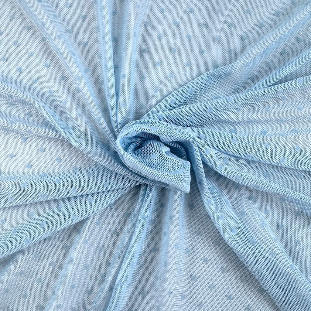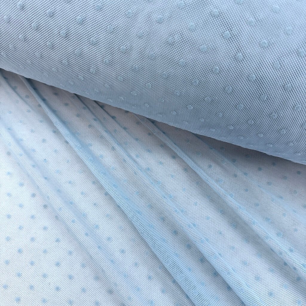 Tüll elastisch "4-way" gepunktet - Hellblau