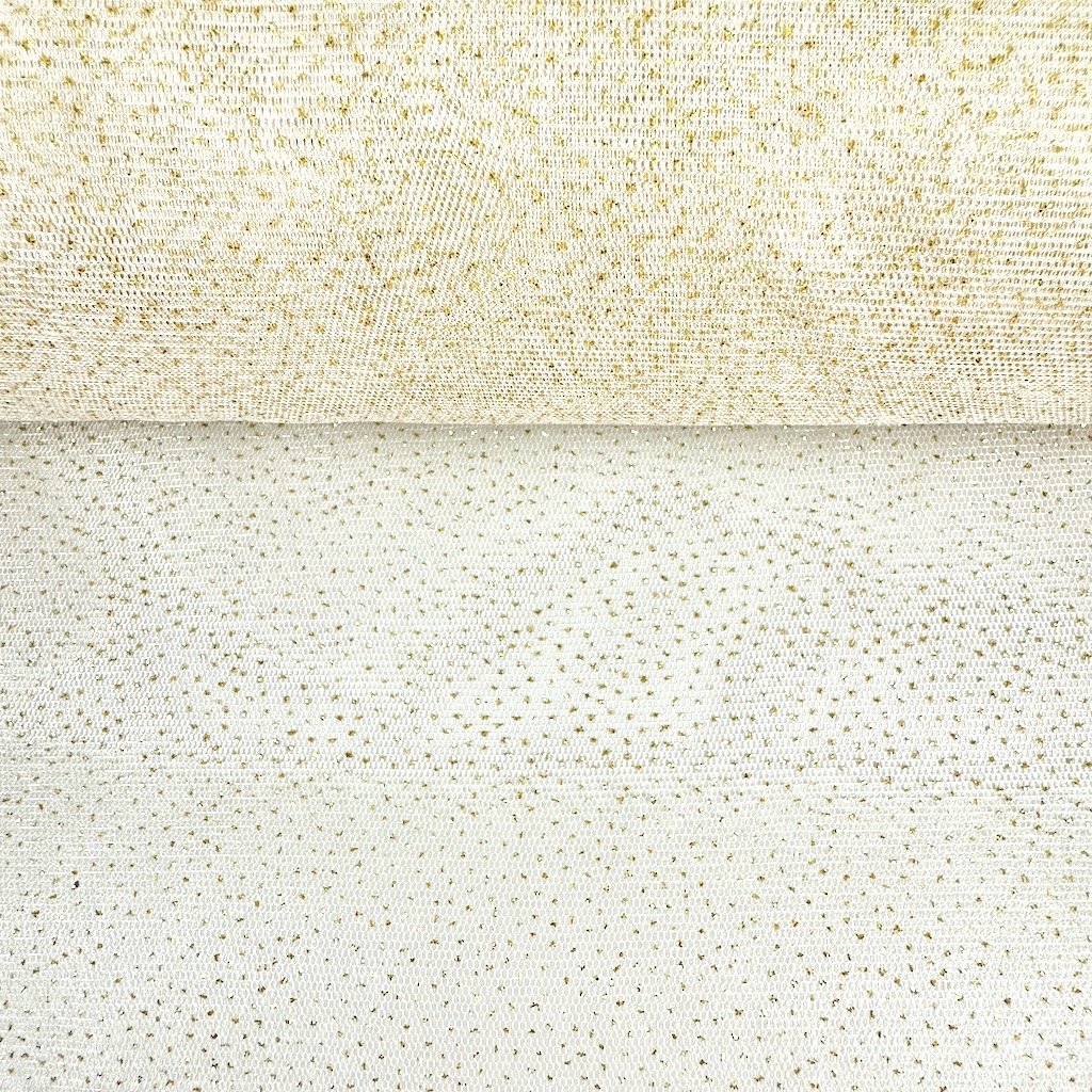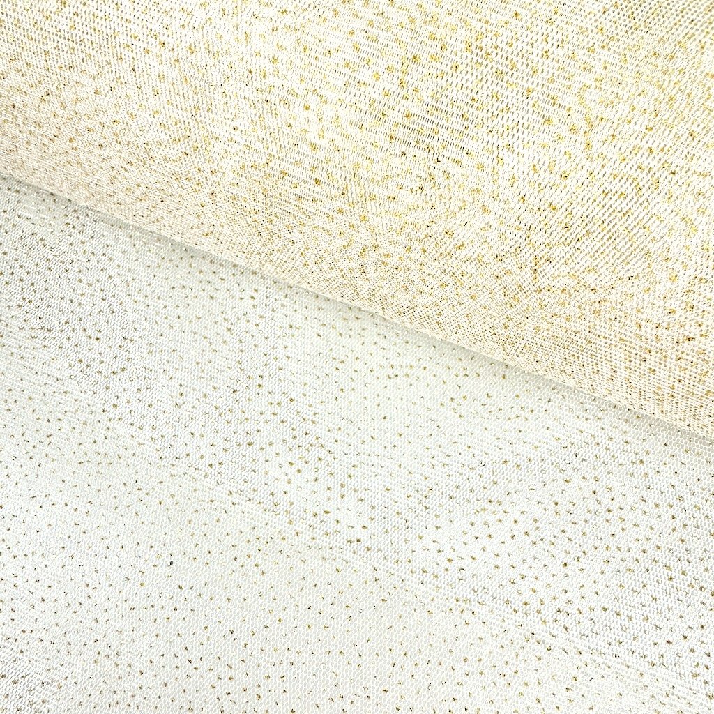 Sehr feiner Tüll, so zart, dass er wie ein Schleier wirkt, mit einer Textur, die ein polygonales Netz bildet. Hochwertiger Tüll eines europäischen Herstellers, aus 100 % Polyester, mit einem Flächengewicht von 30 g/m². Zu den Eigenschaften dieses Materials zählen Farbechtheit, Belastbarkeit, Formbeständigkeit und vor allem Hautfreundlichkeit. Der Stoff eignet sich für Alltags-, Hochzeits-, festliche oder Sportkleider sowie für Tanzkleider, Tops und Tuniken, wo er besonders für Ärmel, Einsätze und andere Bekleidungsteile verwendet wird.