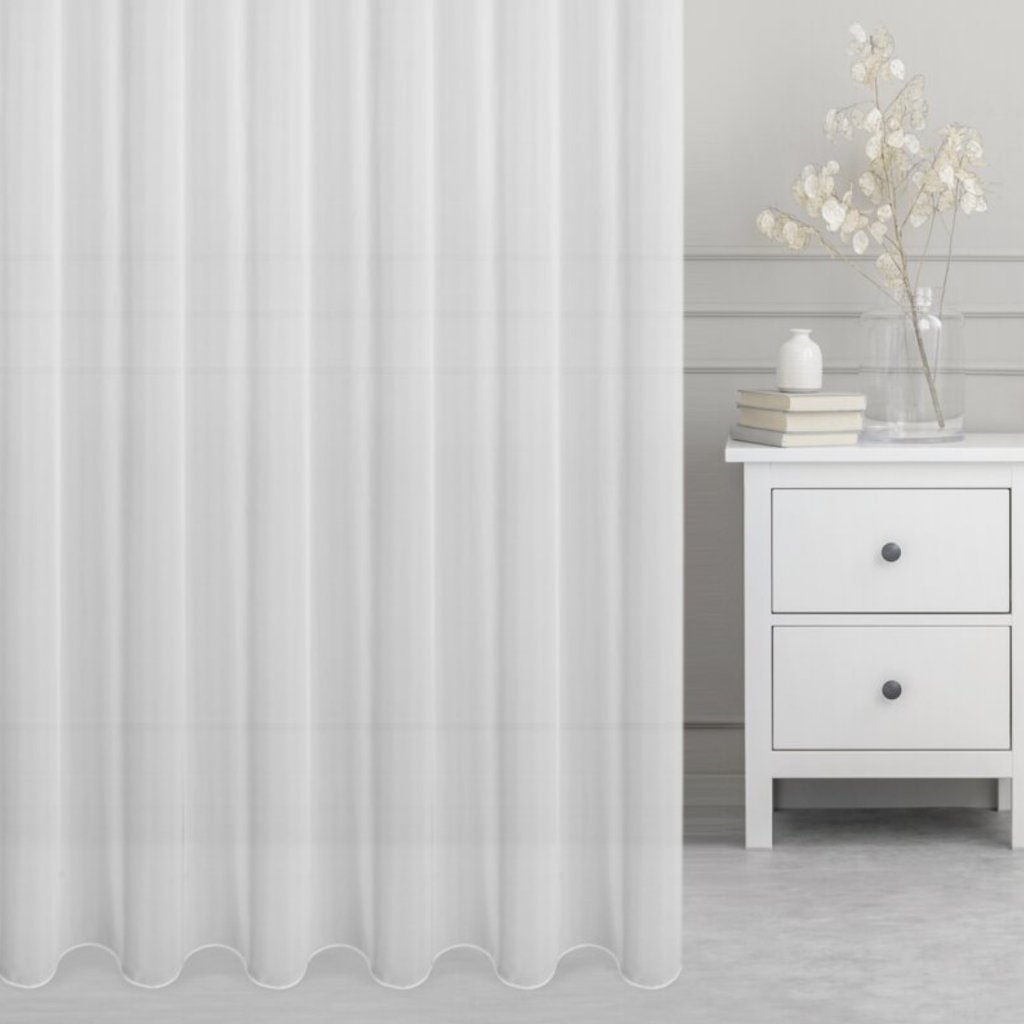 Der Voile Classic ist ein dekorativer Stoff mit einem milchigen Aussehen. Der luxuriöse Stoff wirkt elegant und sorgt für eine angenehme Atmosphäre im Innenraum. Der feine Voile-Stoff begeistert durch seinen unprätentiösen Charme und seine Natürlichkeit. Der halbtransparente milchige Voile unterstreicht dezent den Charme der Fenstergestaltung und ermöglicht dank seiner neutralen Form die Gestaltung verschiedener Fensterdekorationen. Alleine oder in Kombination mit Vorhängen oder Jalousien wirkt er immer elegant, stilvoll und frisch. Er passt sowohl zu glamourösen Innenräumen als auch zu idyllischen, klassischen oder romantischen Stilen. Dank seiner universellen schlichten Form ohne Dekoration passt der Stoff problemlos in jedes Interieur. Die perfekte Ergänzung sind zum Beispiel glänzende Samtvorhänge oder reich verzierte Vorhänge mit eleganten Ornamenten. Der untere Teil des Vorhangs ist mit einer Krawattennaht versehen, die den Stoff beim Aufhängen schön aussehen lässt.